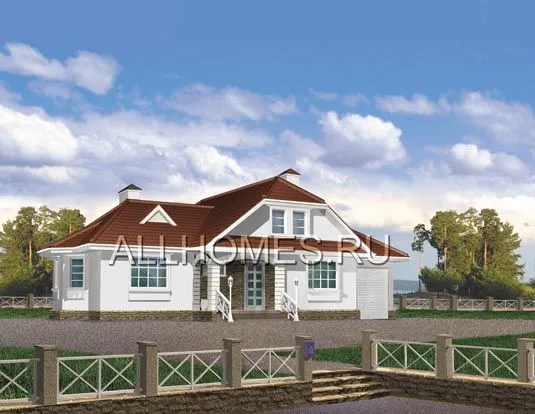 Уютный компактный одноэтажный коттедж с гаражом F-182-1P