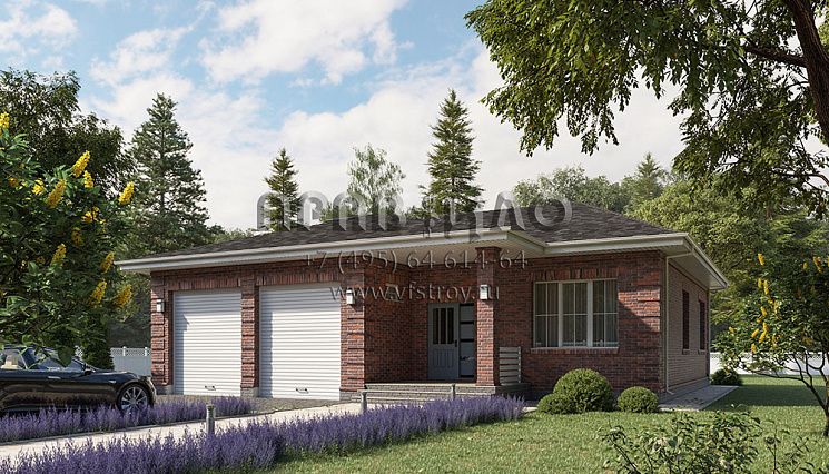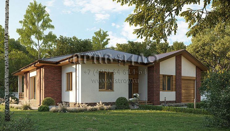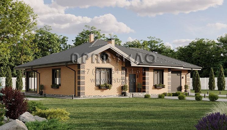 Проект одноэтажного прямоугольного дома с отделкой фасада кирпичом S2-101 (325-101-1)