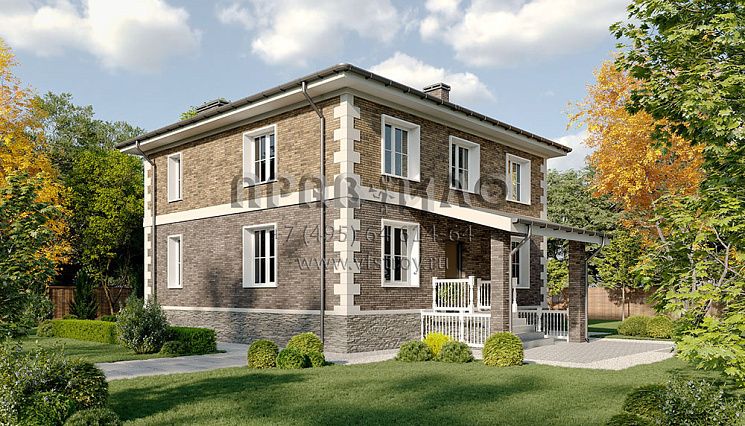 Проект классического двухэтажного дома с крыльцом, террасой и балконом S2-175 (219-175-2)