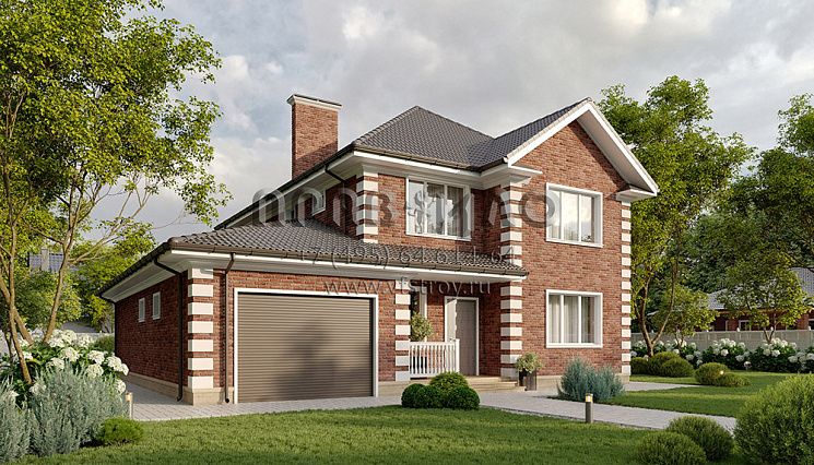 Проект мансардного дома с отделкой фасада кирпичом ручной формовки S2-237 (310-237-1М)
