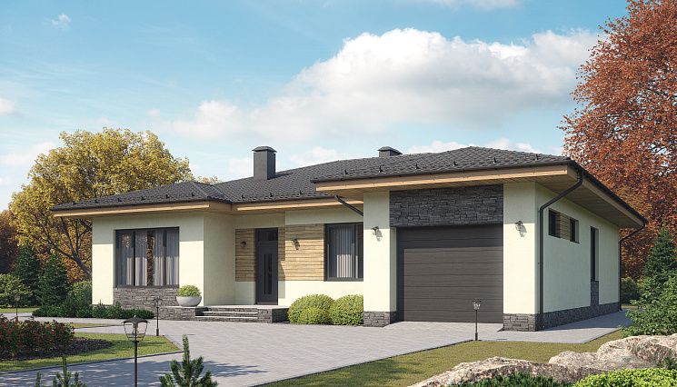 Проект одноэтажного дома с гаражом для постоянного проживания S7-170(5-06)