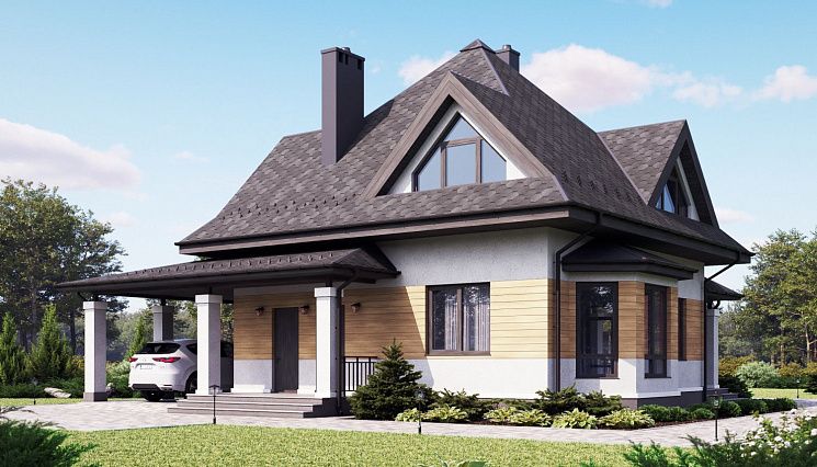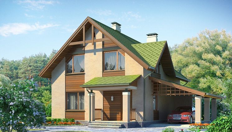 Экономичный загородный дом с навесом для автомобиля S7-116 (3-13c)