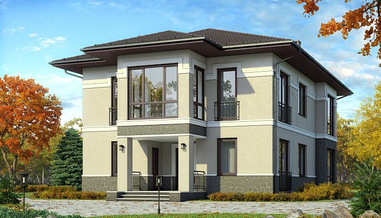 Проект двухэтажного дома с эркером s7-136 (3-46b)