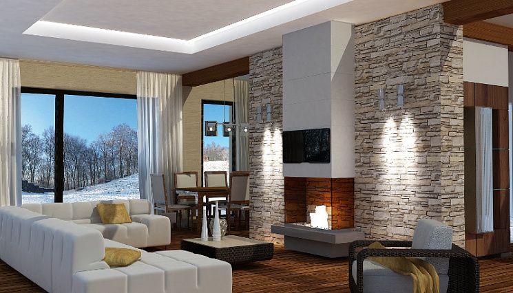 Современный одноэтажный дом с двусветной гостиной S7-186 (3-30)