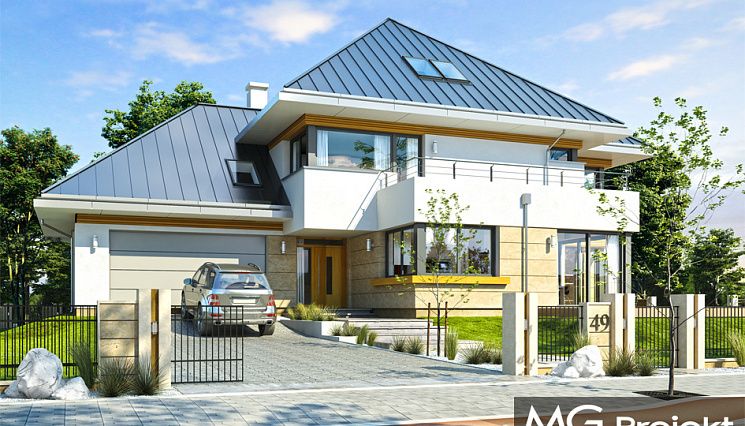 В выбранный вами готовый проект по желанию могут быть внесены изменения: размеры оконных и дверных блоков, количество спален и их площадь, наличие балкона, вид отделки и др. В качестве кровельного материала можно выбрать черепицу из металла, гибкую (битумную), керамическую и др. Большая зона остекления, терраса и балконы, характерные практически для всех проектов, обеспечивают доступ дневного света в помещения в любое время года.