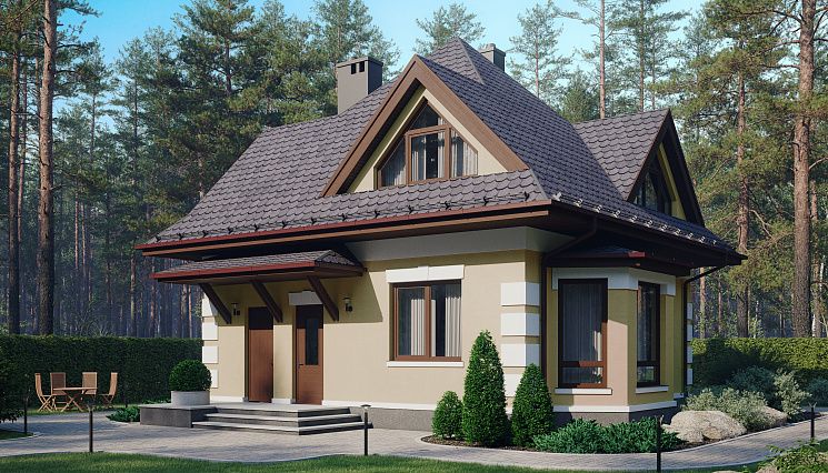 Для отделки используется штукатурка. Крыша покрывается современными покрытиями: металлочерепицей различной цветовой палитры, гибкой или керамической черепицей.