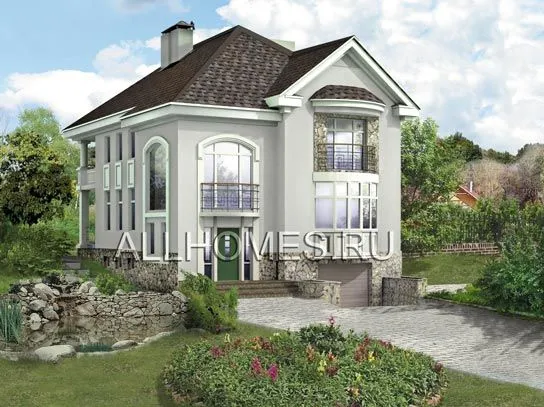 Проект коттеджа с цокольным этажом и гаражом на один автомобиль. I-217-1K