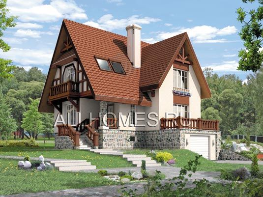Проект дома с украшенными фахверком фасадами J-211-1K