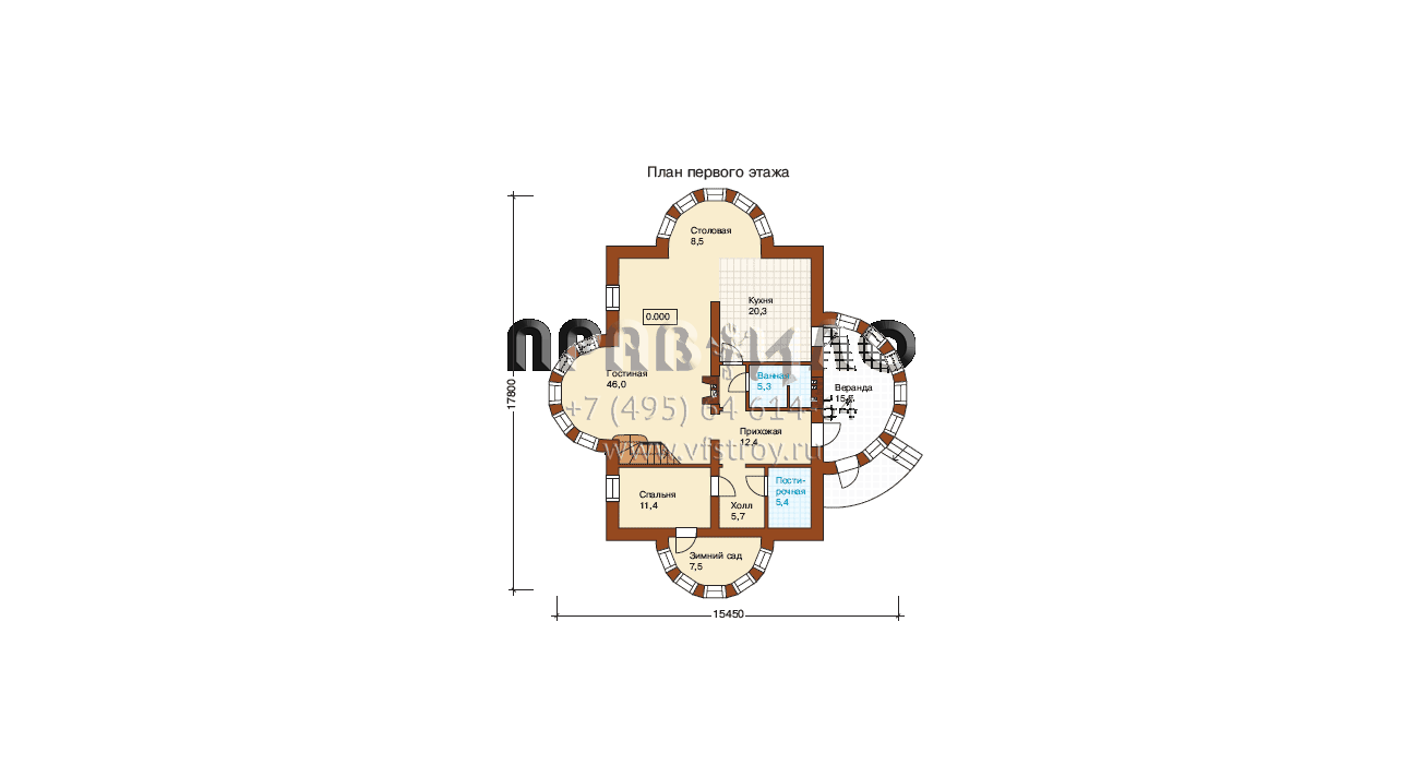 Коттедж с зимним садом и просторной двусветной гостиной с камином K-228-1P