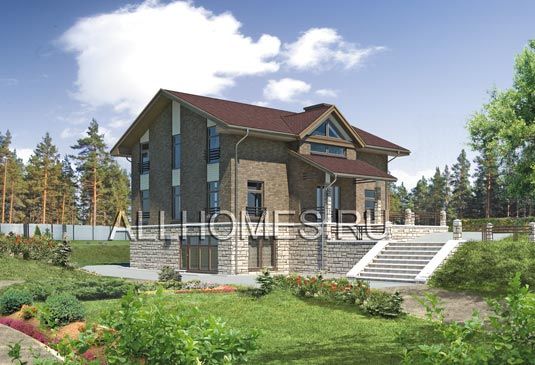 Двухэтажный коттедж с сауной и бассейном на цокольном этаже M-373-1K