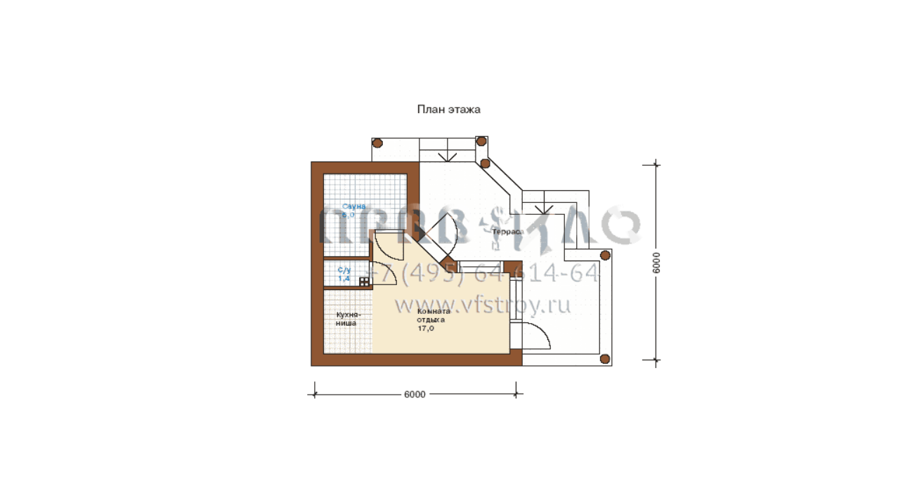 Проект бани из газобетона по проекту P-024-1P