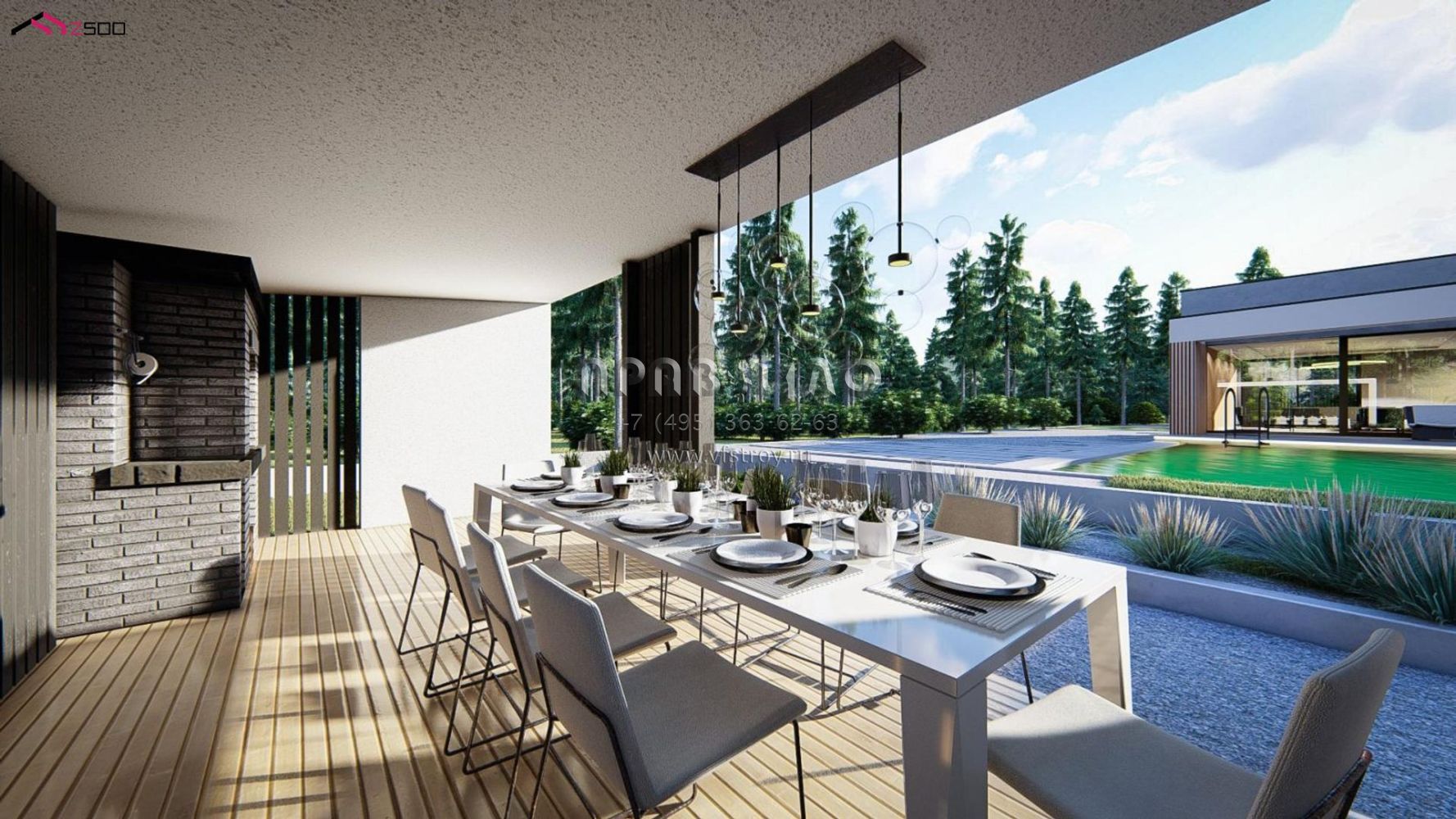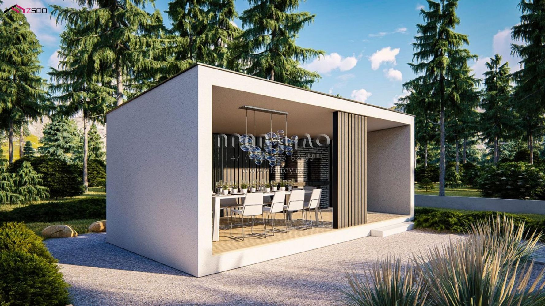Проект современной беседки с камином P3-23 (Za1)
