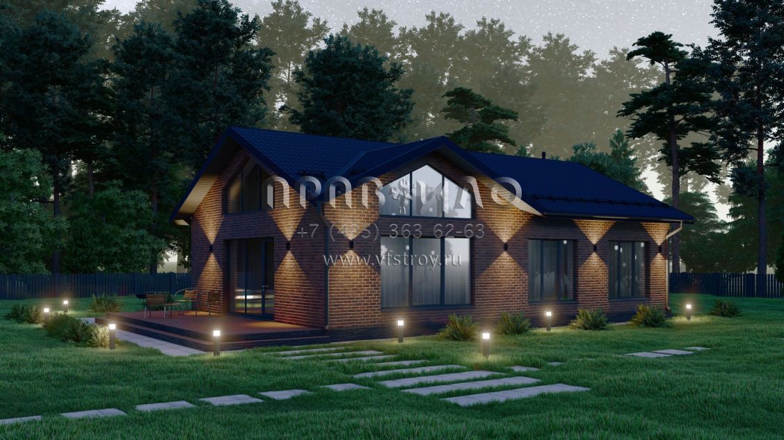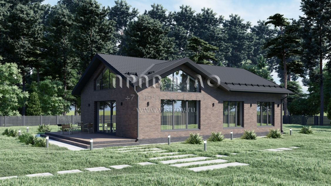 Проект одноэтажного дома с большими окнами S-108