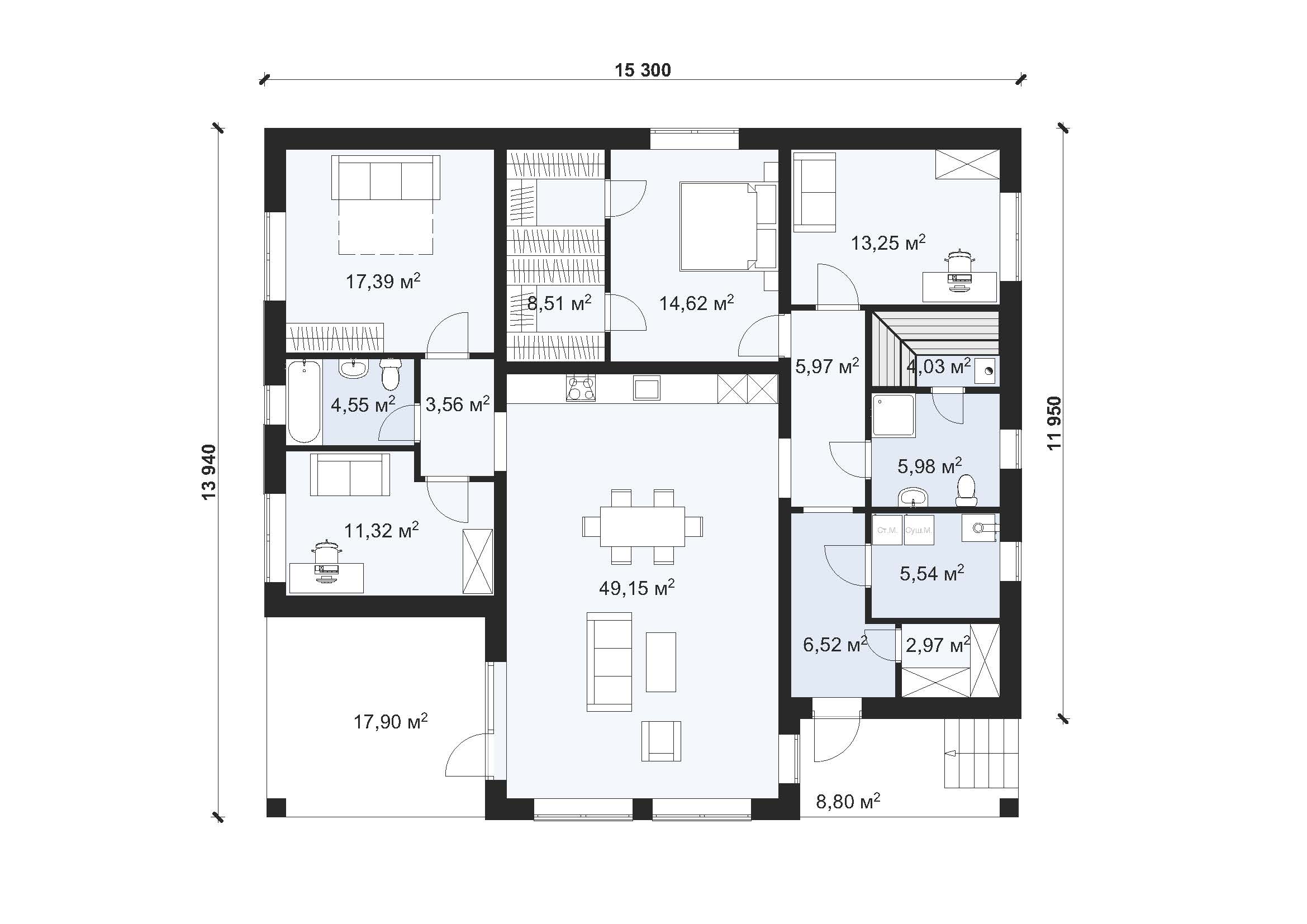 | Общая площадь | 152 м2 |