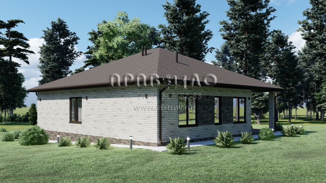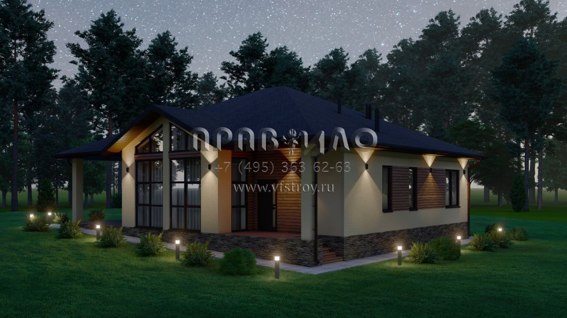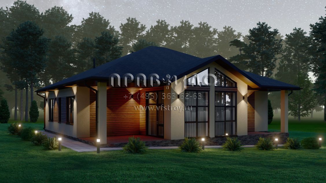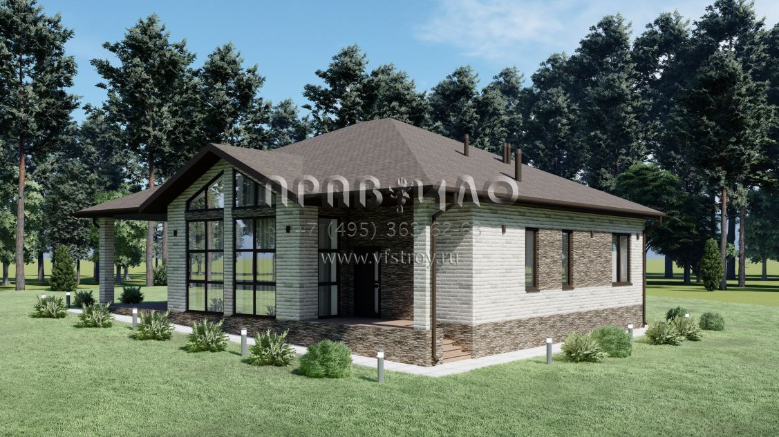 Проект одноэтажного дома со вторым светом для неровного участка S-152