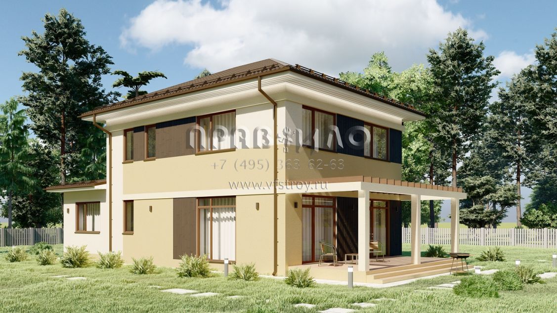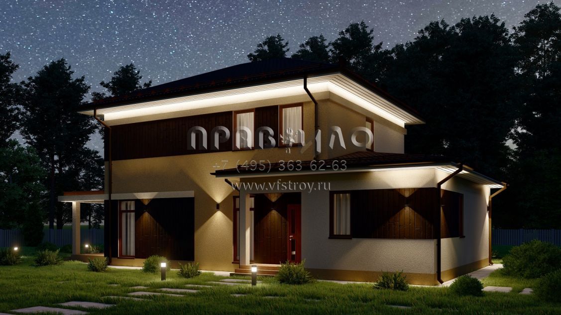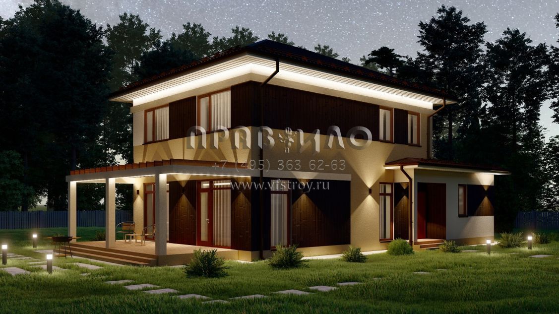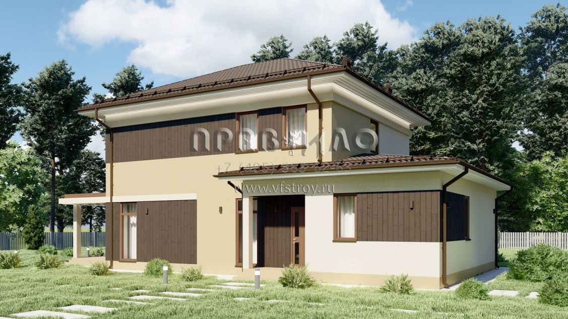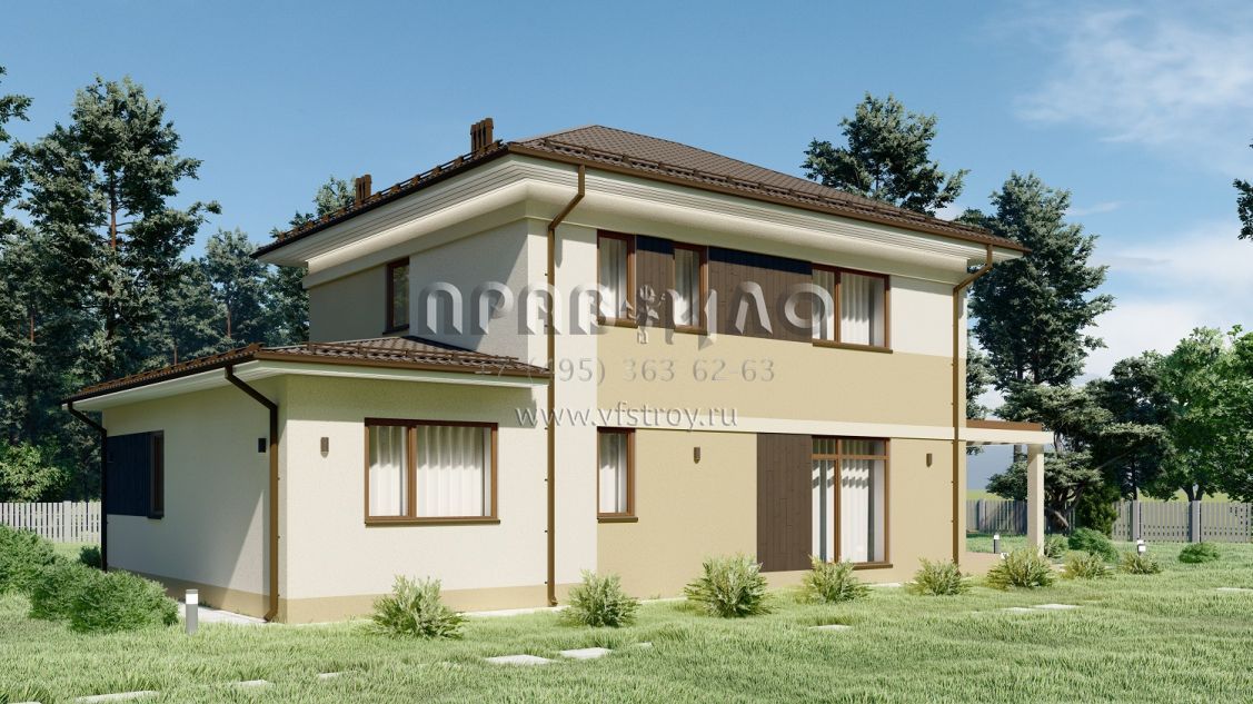 Проект современного двухэтажного коттеджа с 4 спальнями S-166