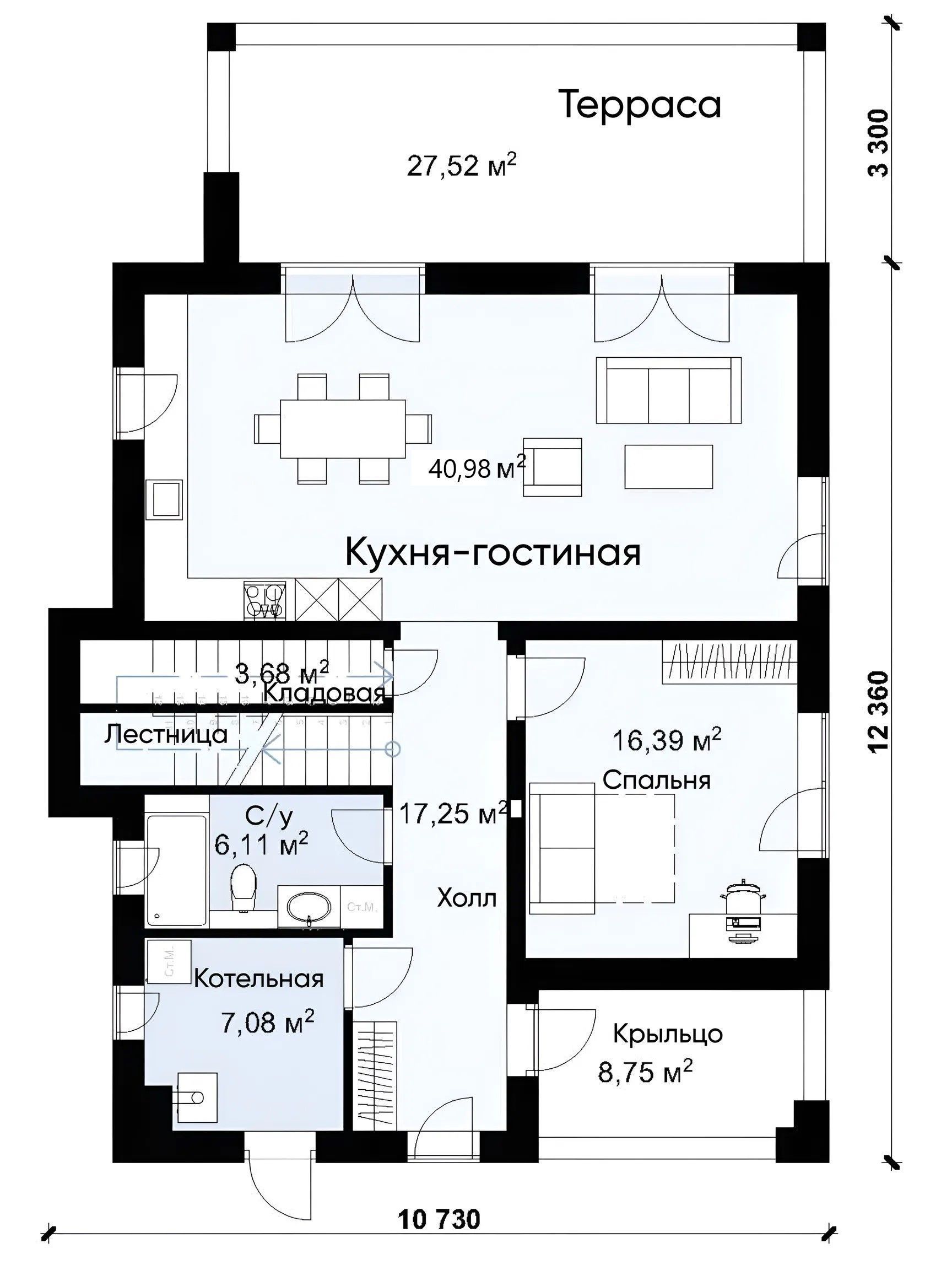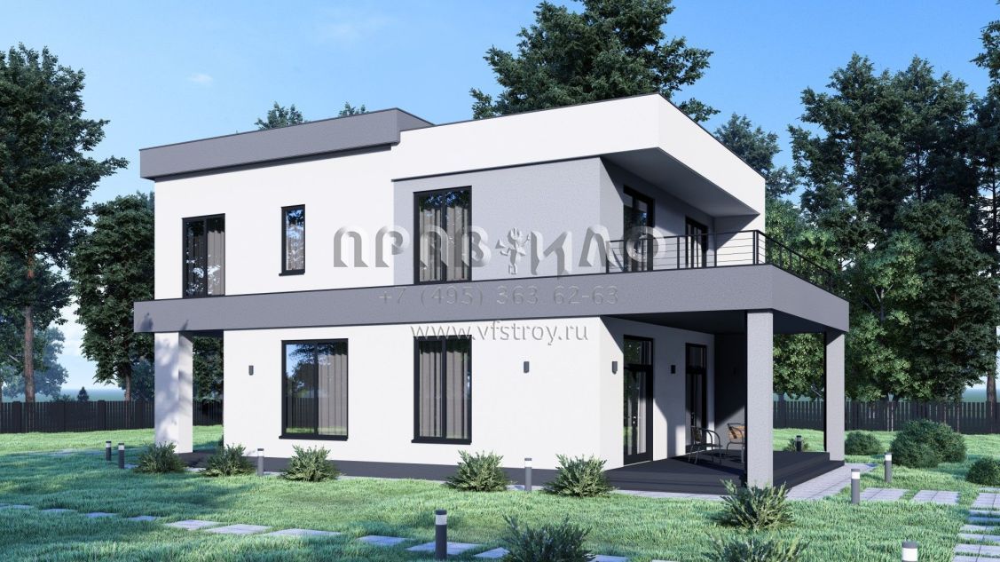 Проект дома в стиле Хай-тек с эксплуатируемой кровлей S-182