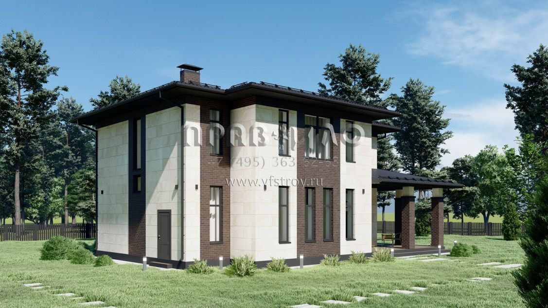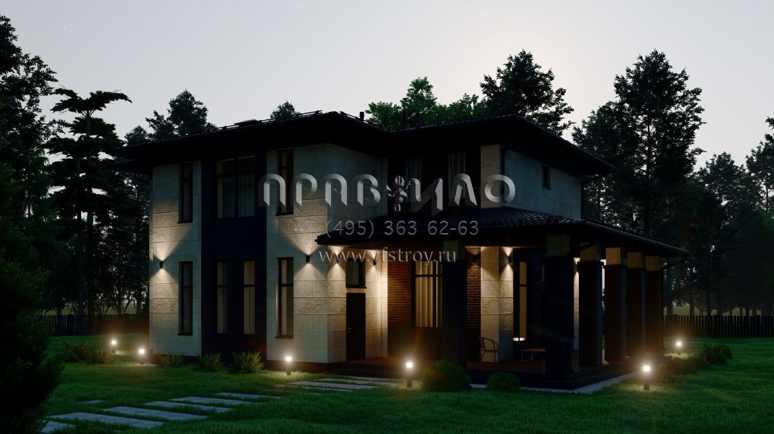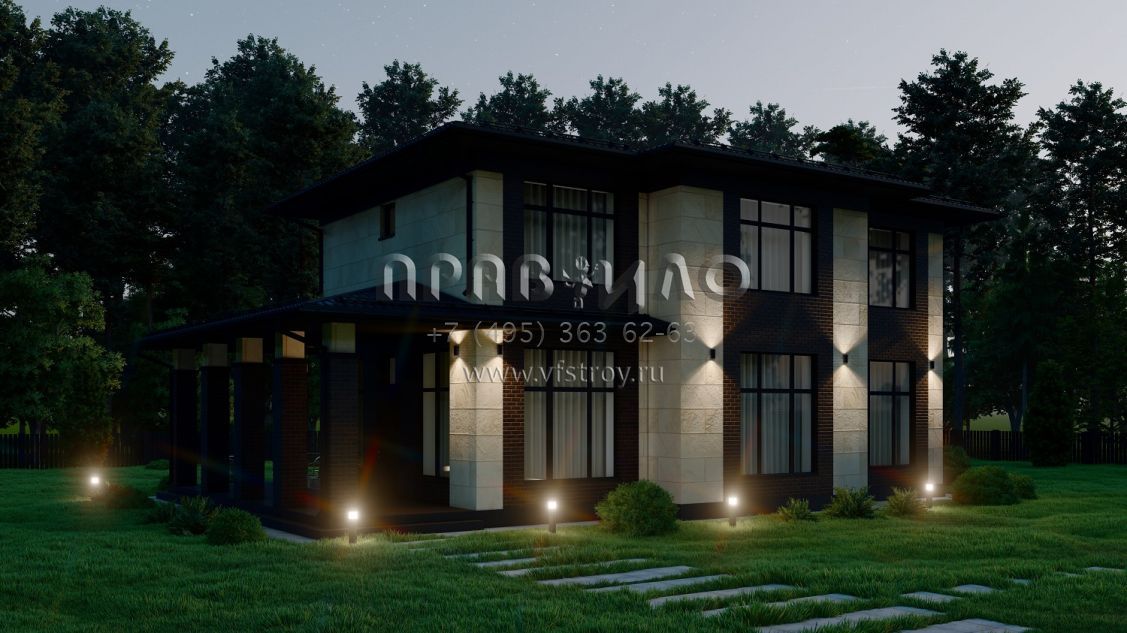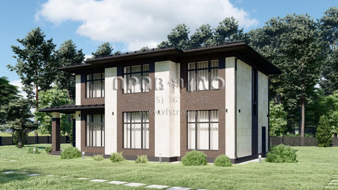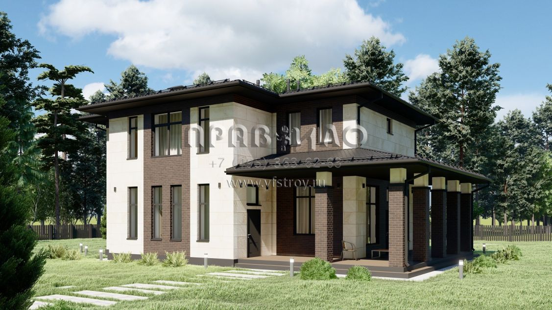 Проект двухэтажного дома с облицовкой камнем в стиле Райт S-221