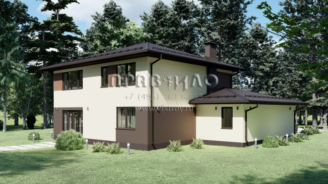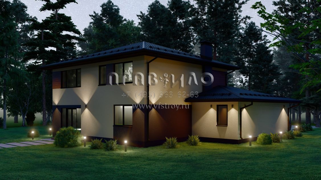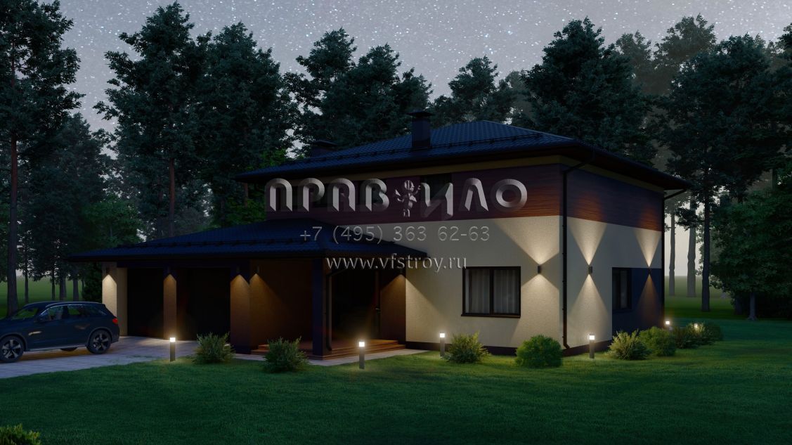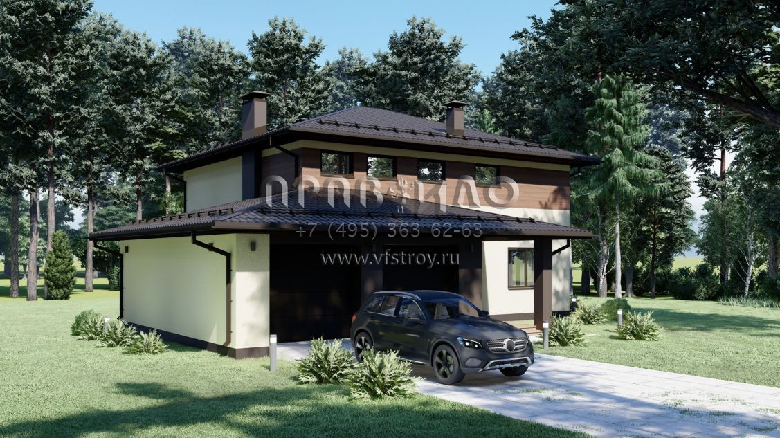 Проект современного дома с гаражом на две машины S-227