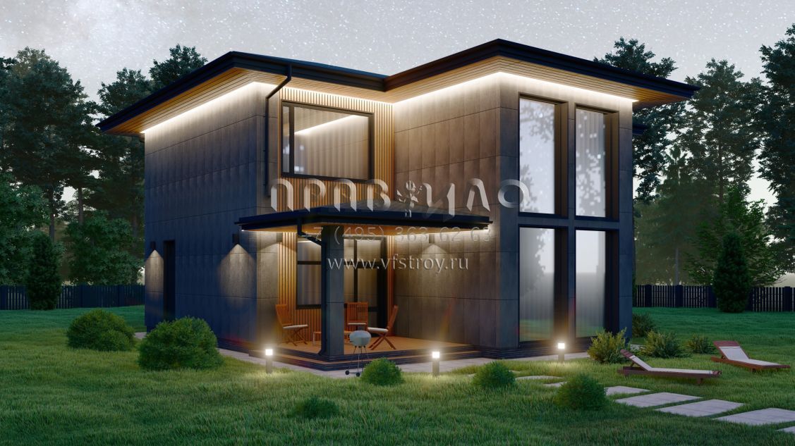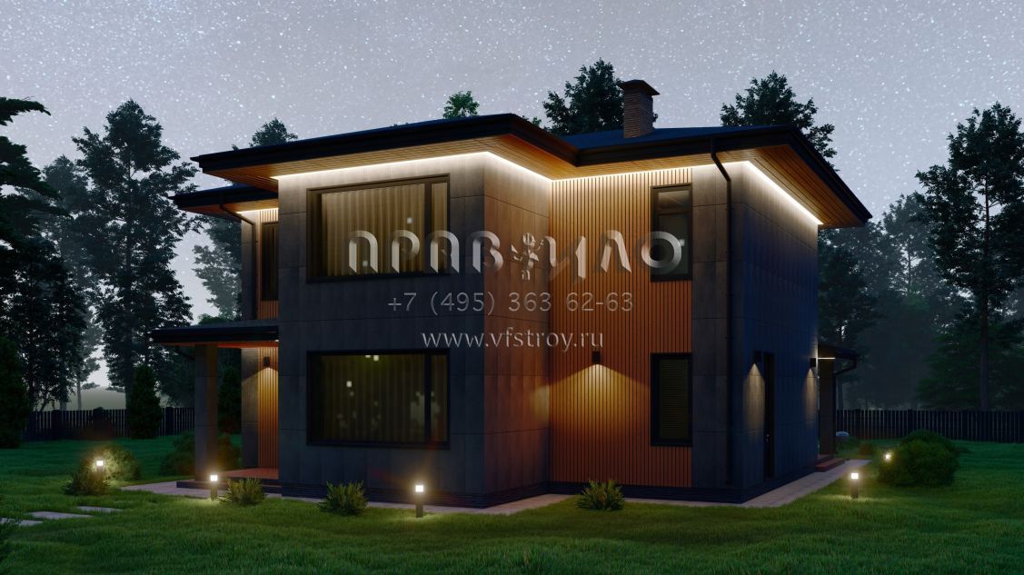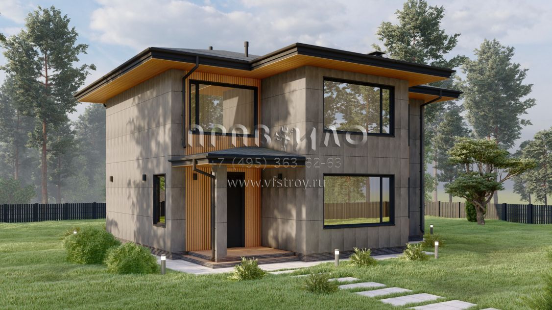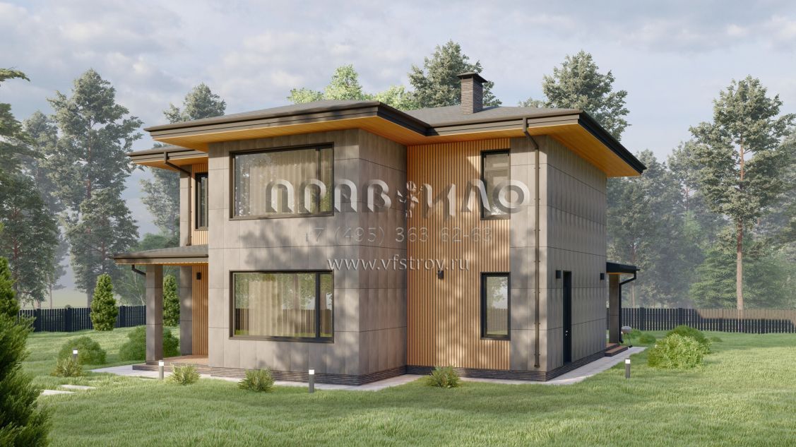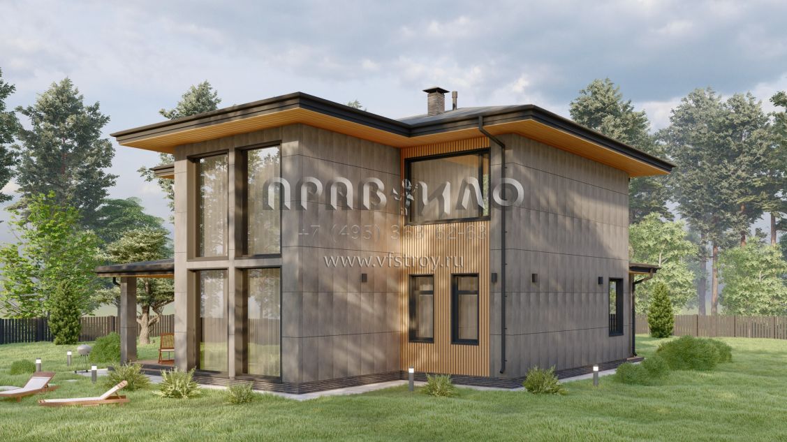 Проект стильного двухэтажного коттеджа со вторым светом в стиле Райт S-228-2