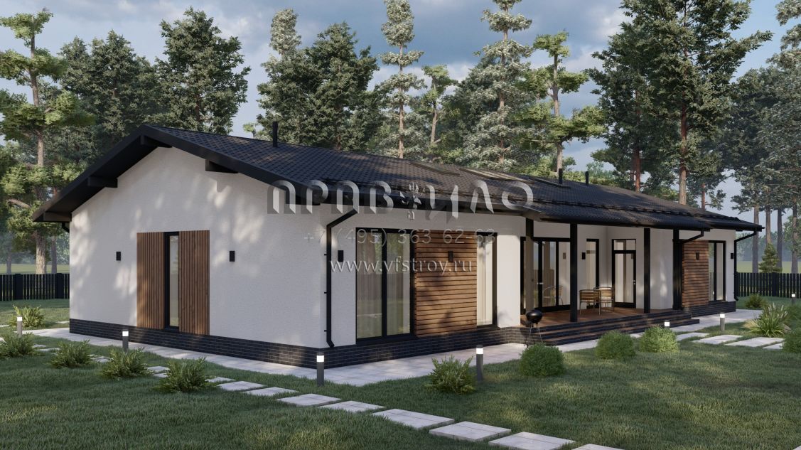 Проект одноэтажного вытянутого по длине дома S-232