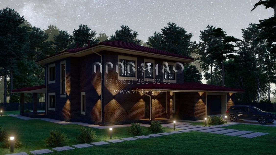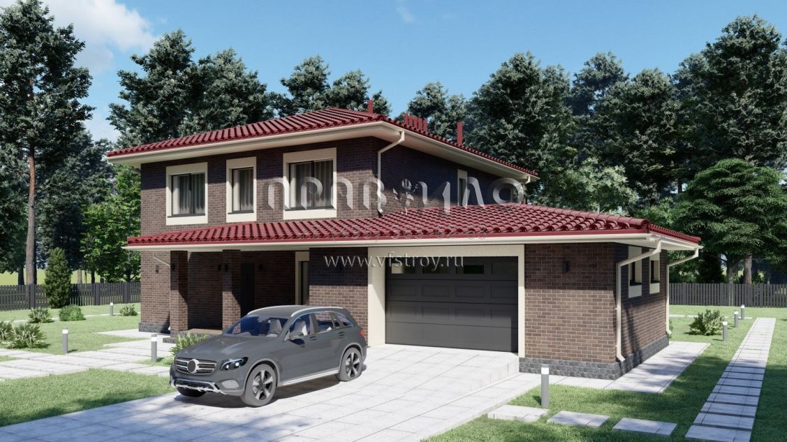 Проект двухэтажного дома с гаражом на две машины в стиле Райт S-234