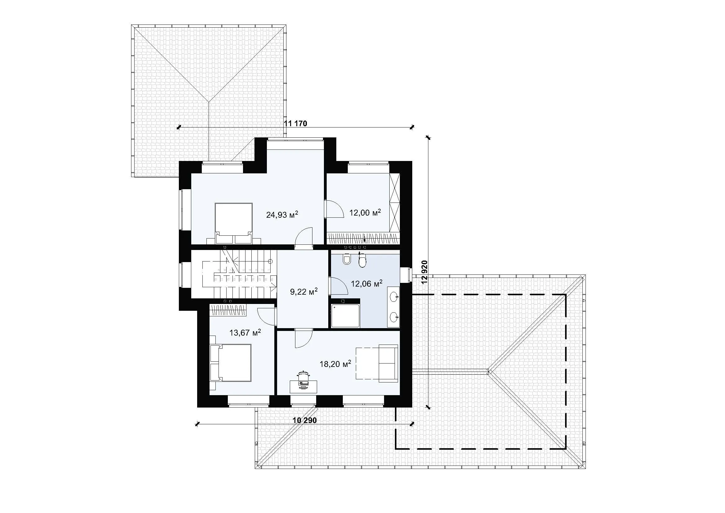 | Возможный материал кровли | металлочерепица, гибкая черепица, керамическая черепица, композитная черепица, цементно-песчаная черепица, фальцевая кровля |