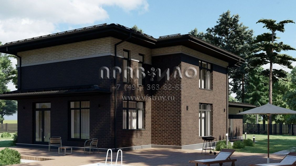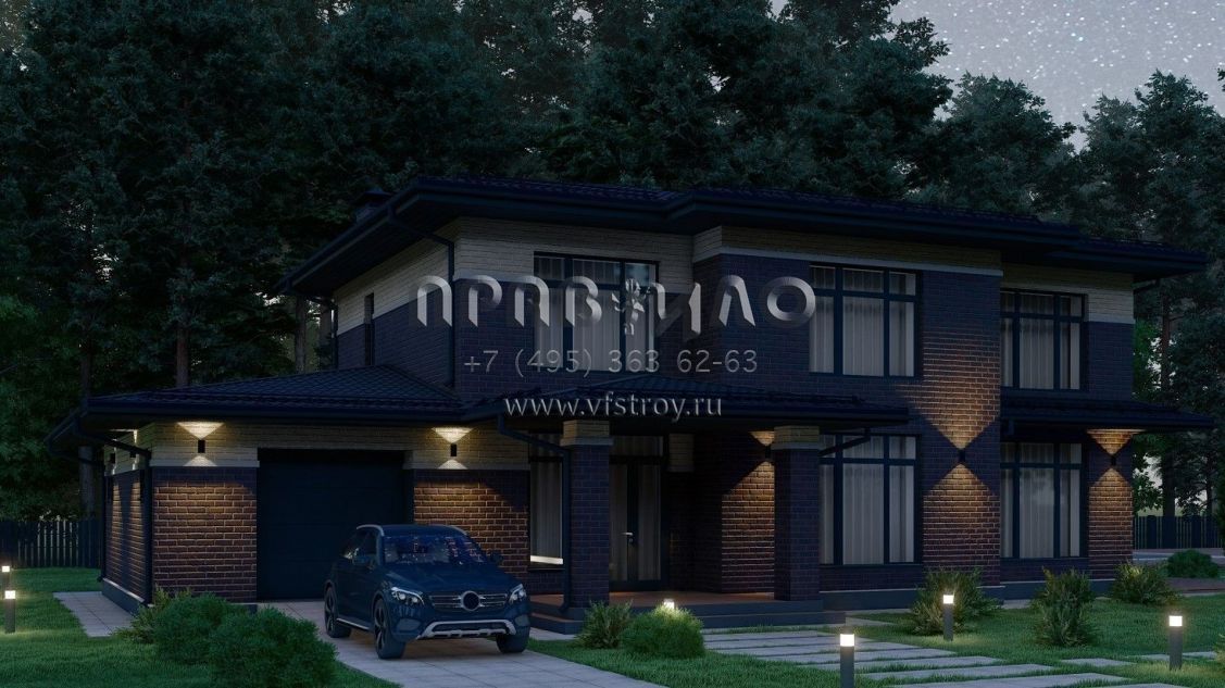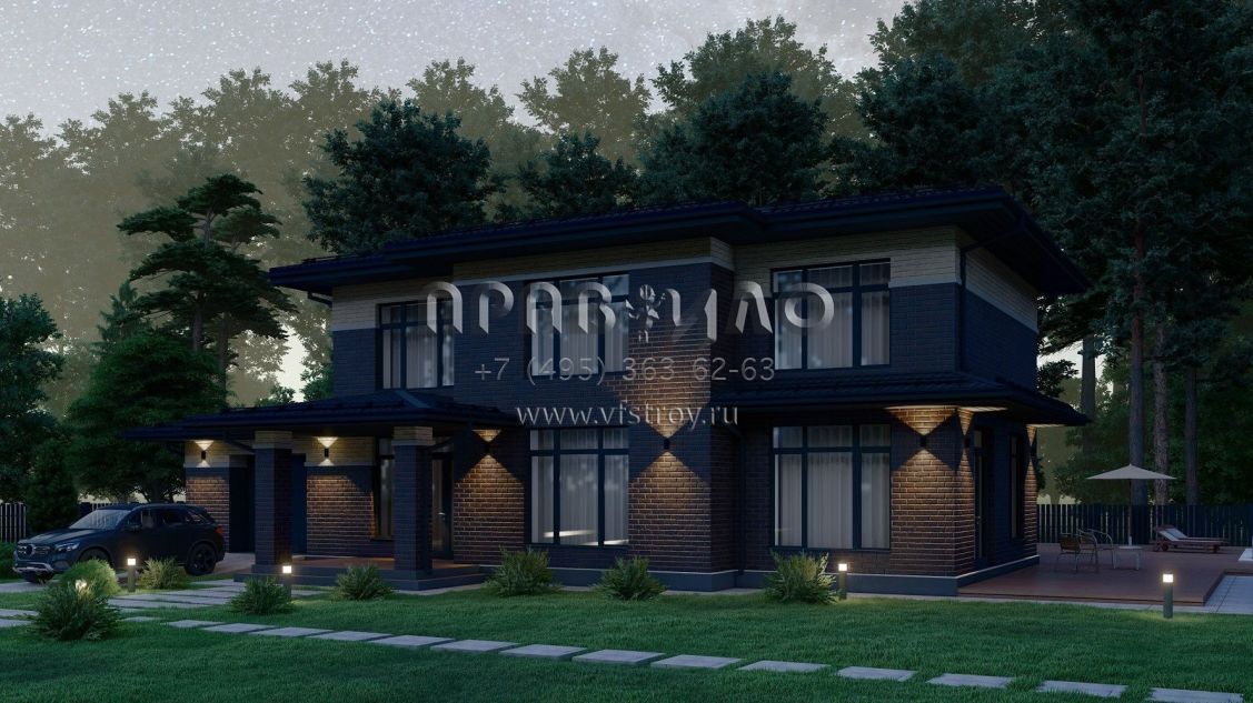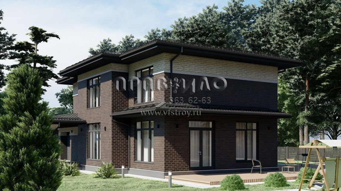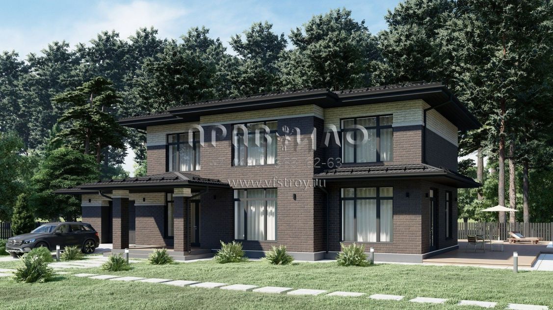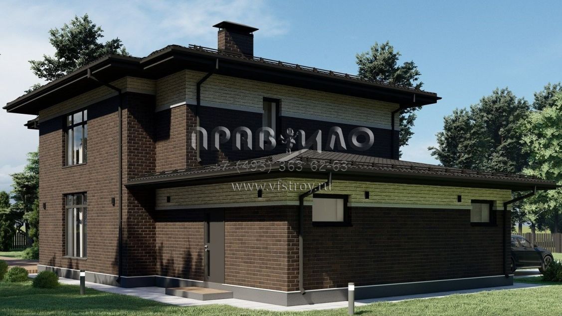 Проект двухэтажного дома с облицовкой кирпичом в стиле Райт S-250