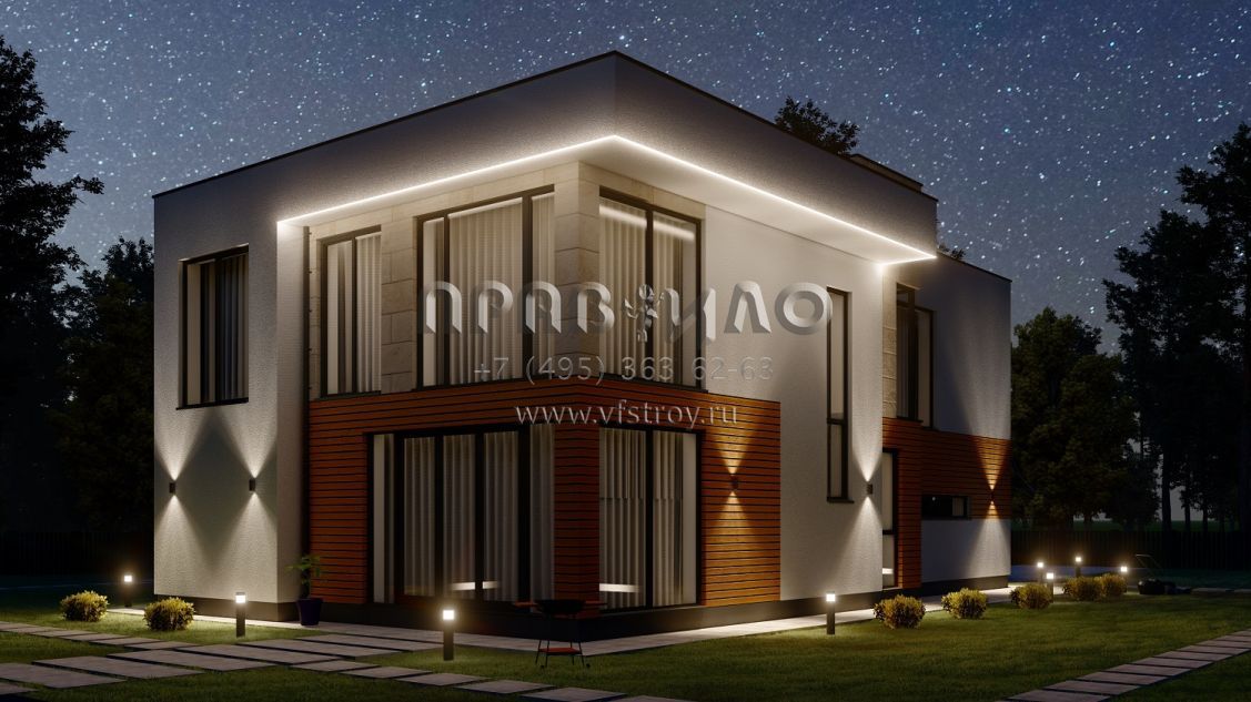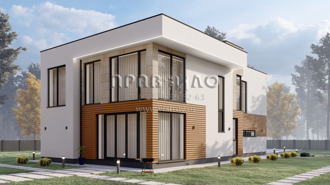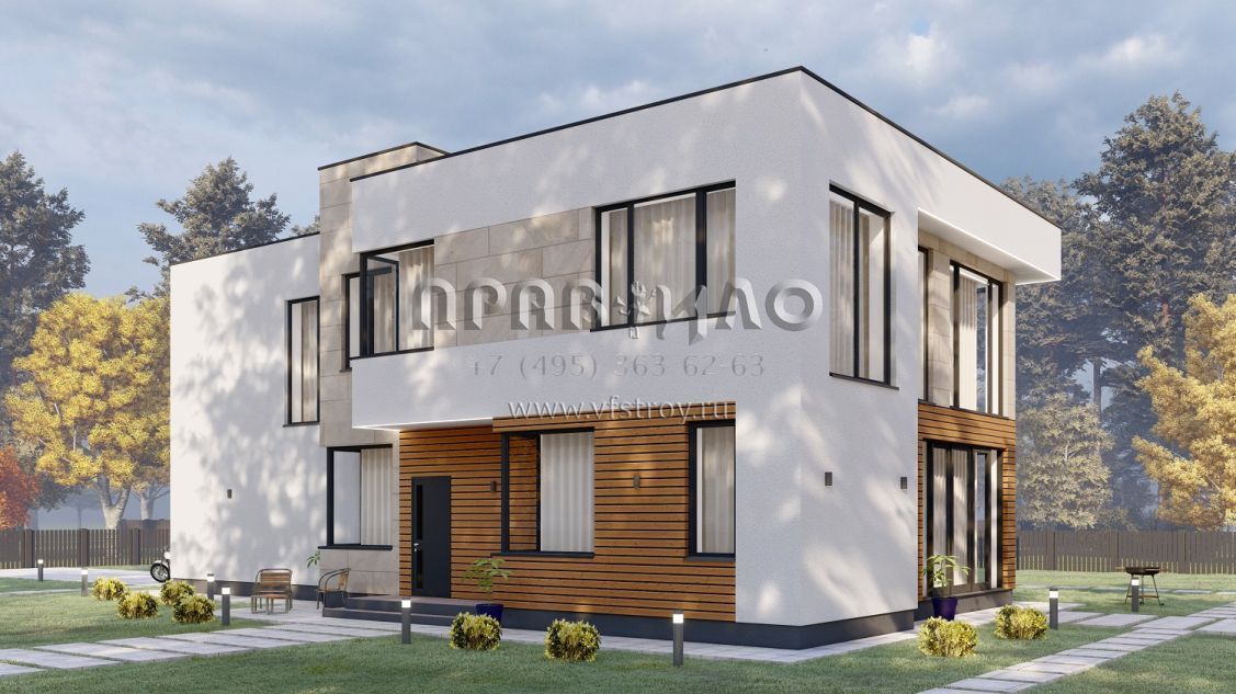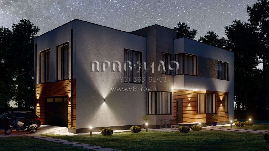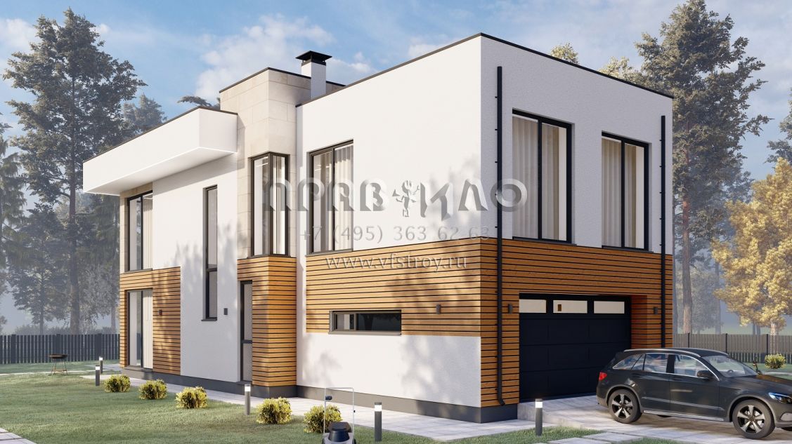 Проект коттеджа в стиле хайтек с гаражом на две машины S-269