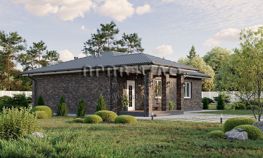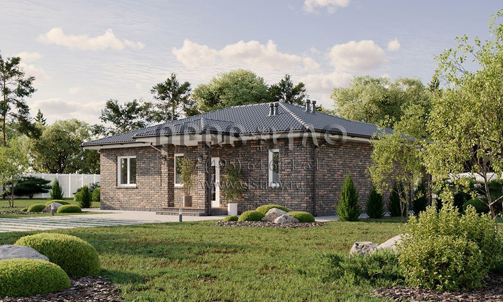Проект одноэтажного прямоугольного дома с отделкой фасада кирпичом S2-101 (325-101-1)