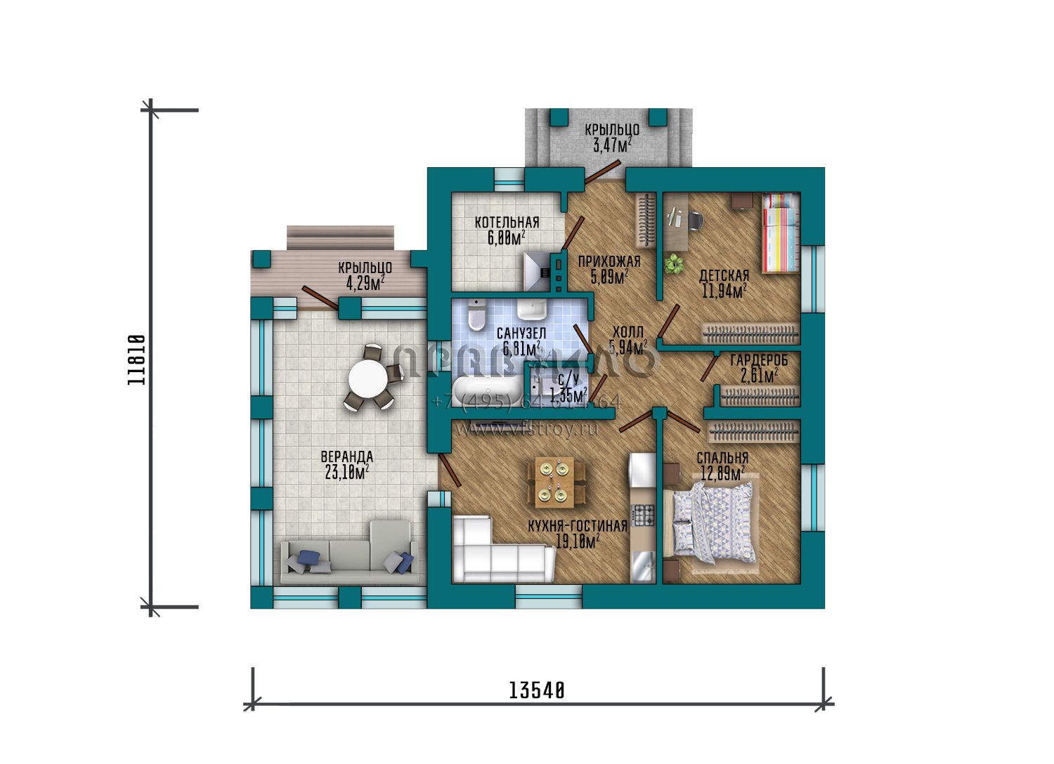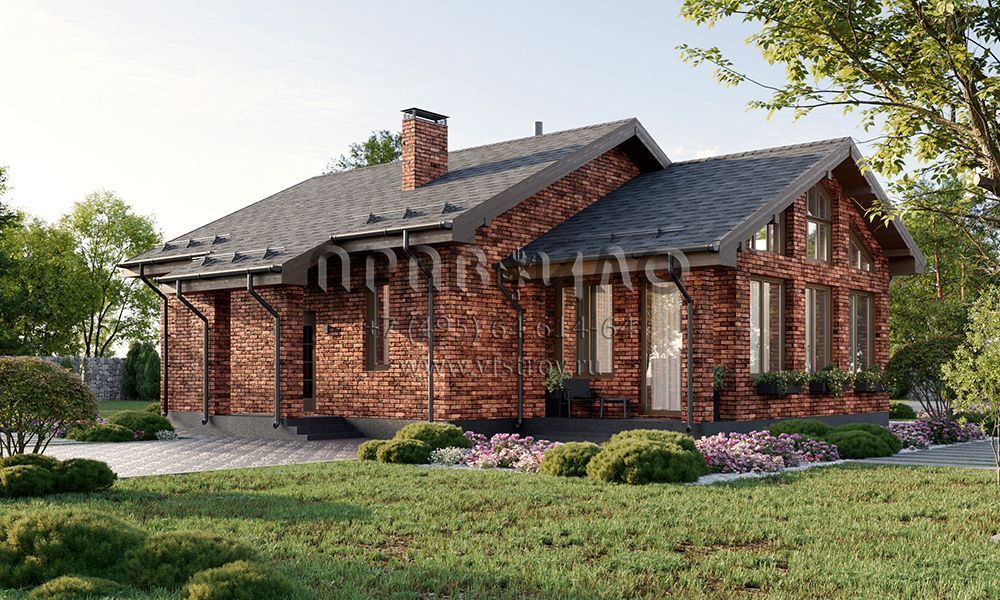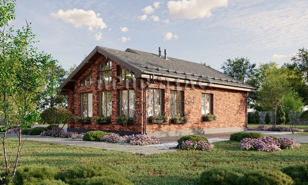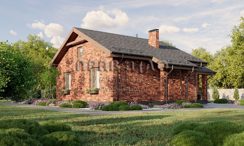 Проект одноэтажного дома с большой крытой верандой с витражным остеклением S2-103 (378-103-1)