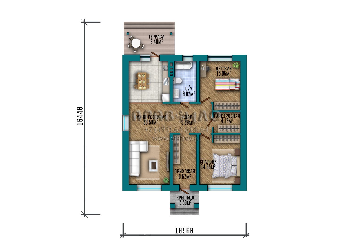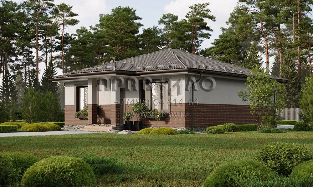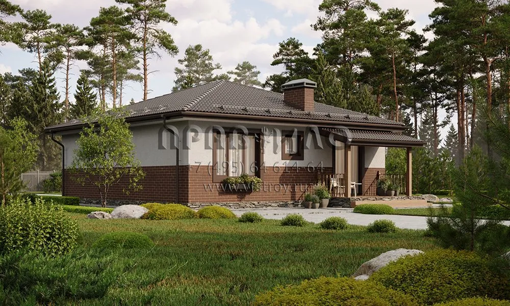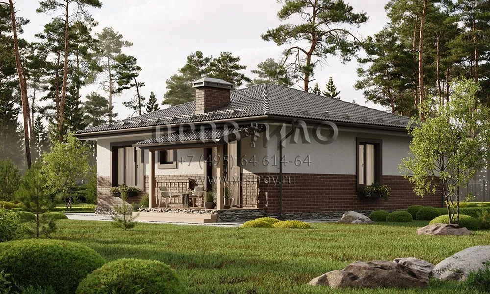 Проект компактного одноэтажного дома с комбинированной отделкой фасада S2-106 (360-106-1)