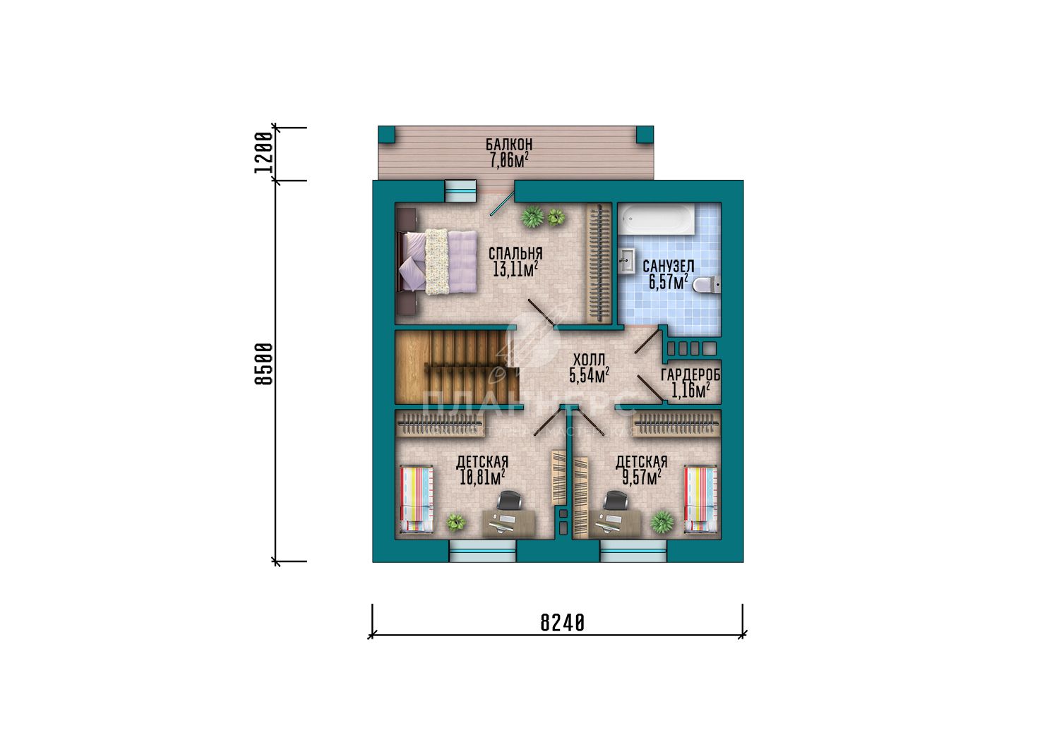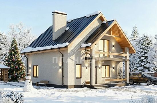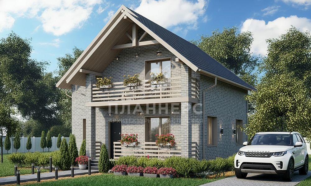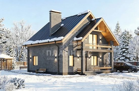 Проект с мансардой, террасой и фасадом из тёмного S2-108 (477-108-1М)
