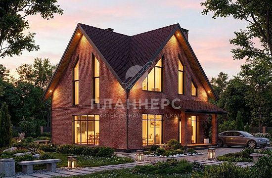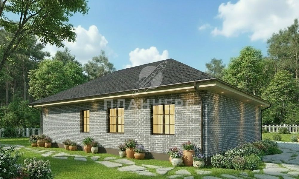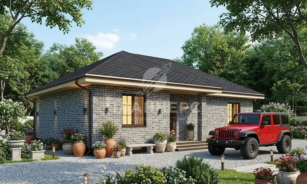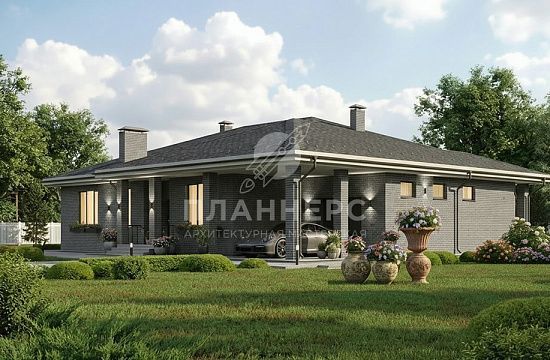 Проект с фасадом из серого кирпича и вальмовой крышей S2-112 (566-112-1)