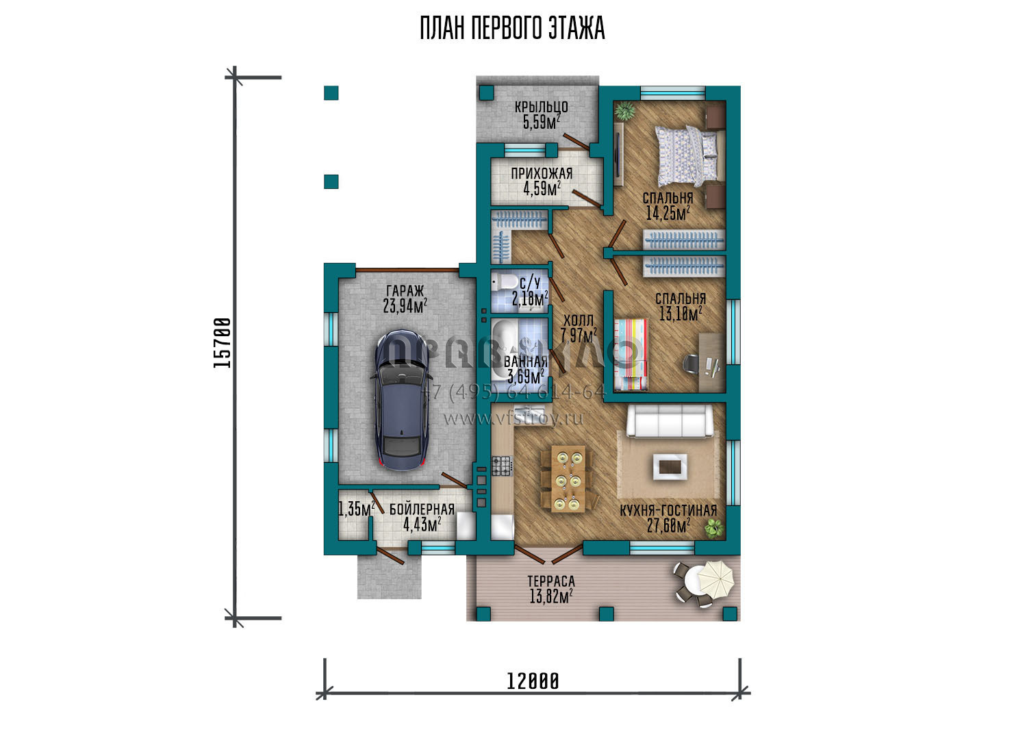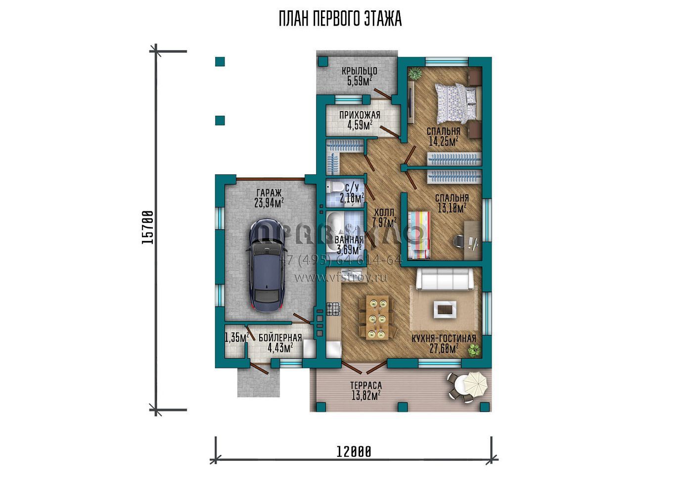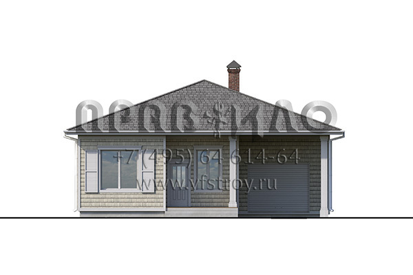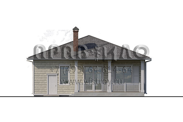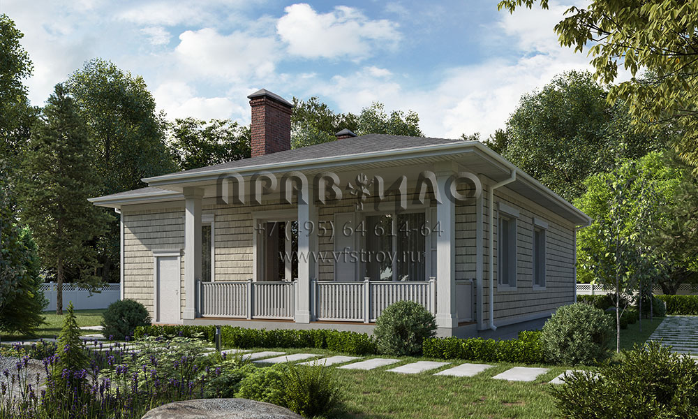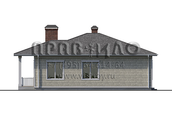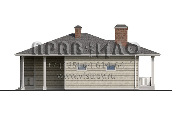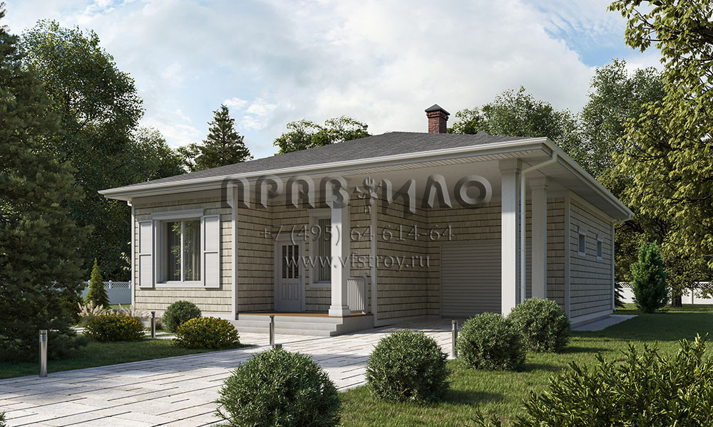 Проект одноэтажного дома с навесом при въезде в гараж, крыльцом и террасой на заднем дворе S2-115 (197-115-1Г)