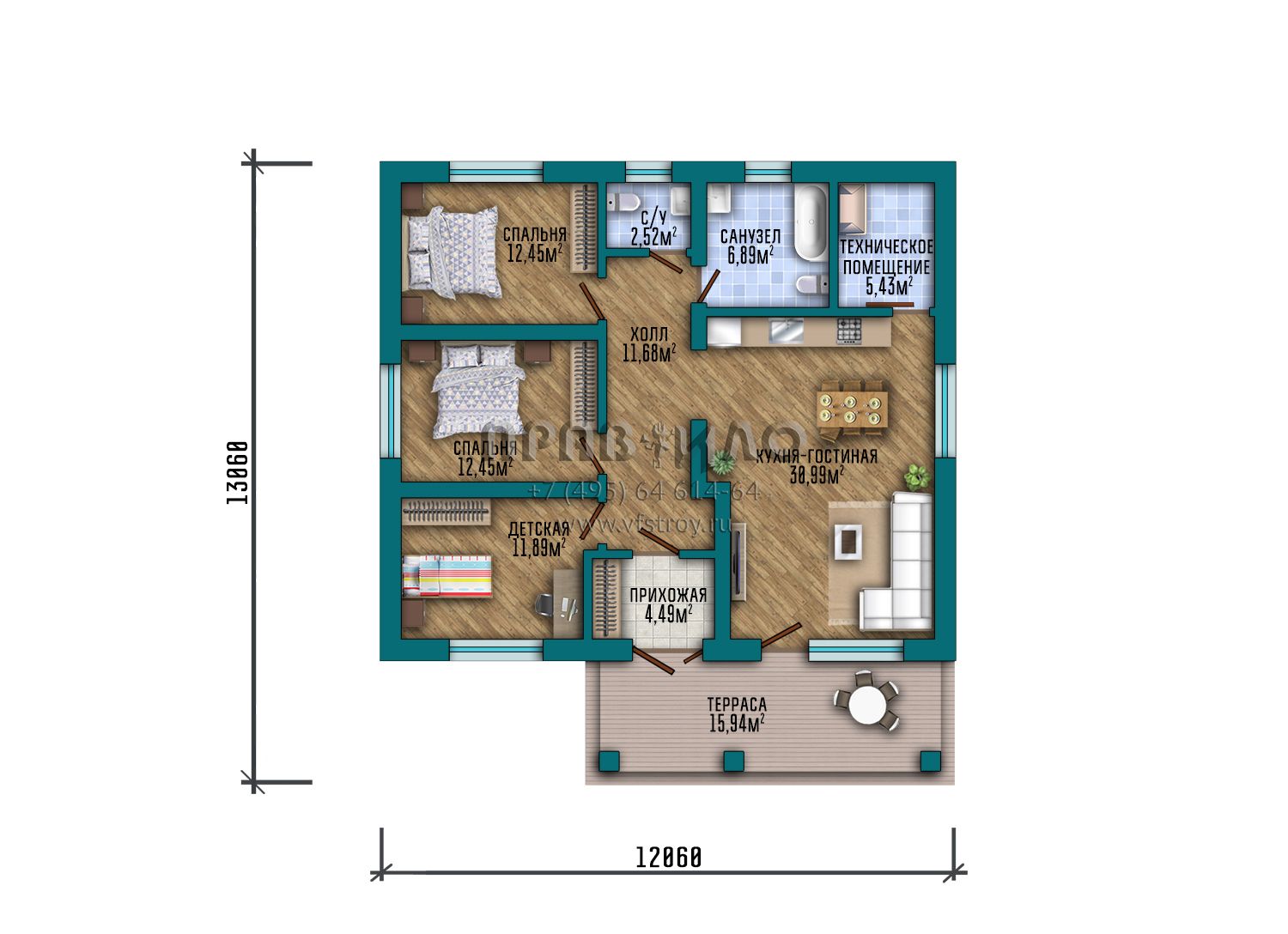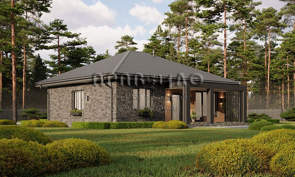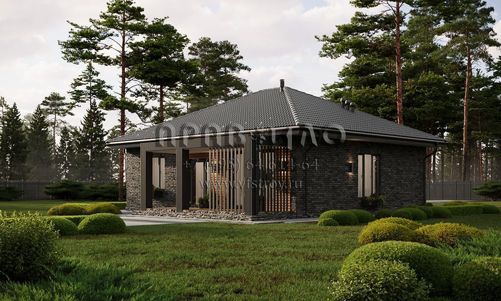Проект небольшого дома с классической отделкой фасада кирпичом темных тонов S2-115 (355-115-1)