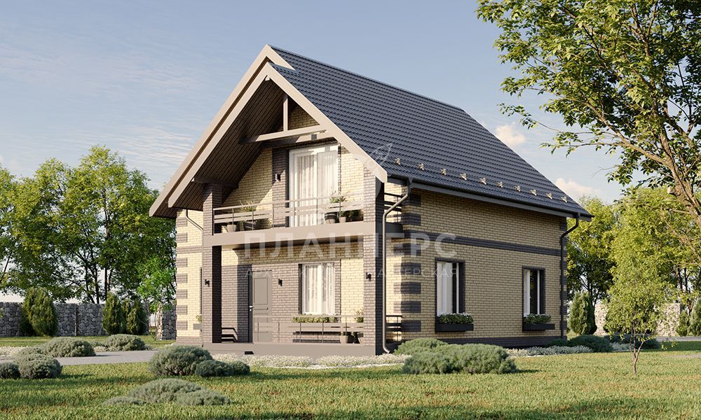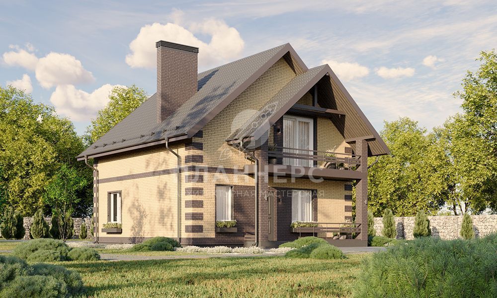 Проект загородного дома с мансардным этажом и крытым балконом на втором этаже S2-119 (445-119-1М)