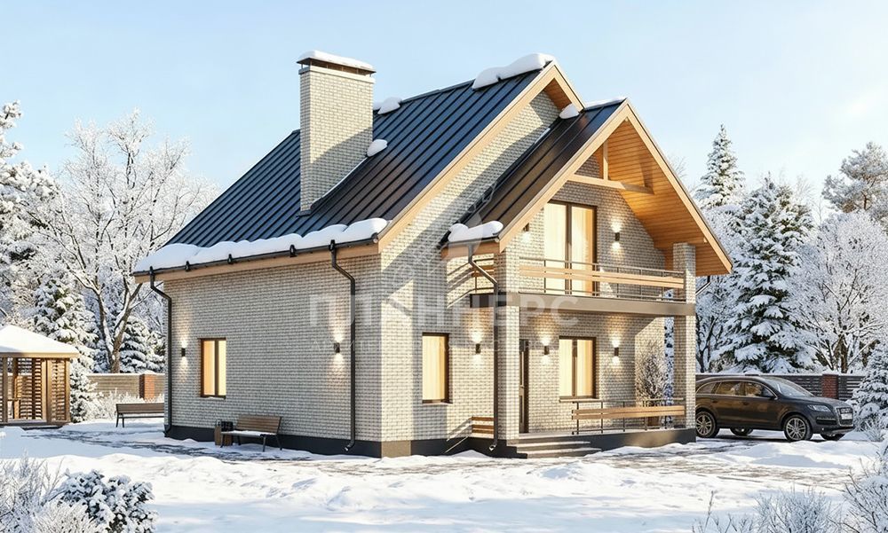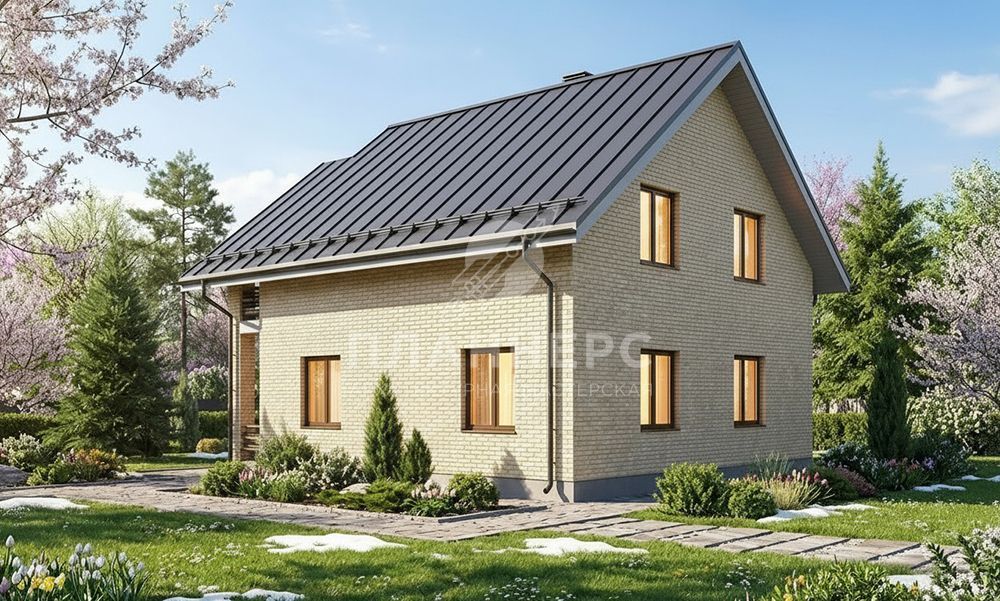 Проект со светлым кирпичным фасадом и мансардным этажом S2-119 (473-119-1М)