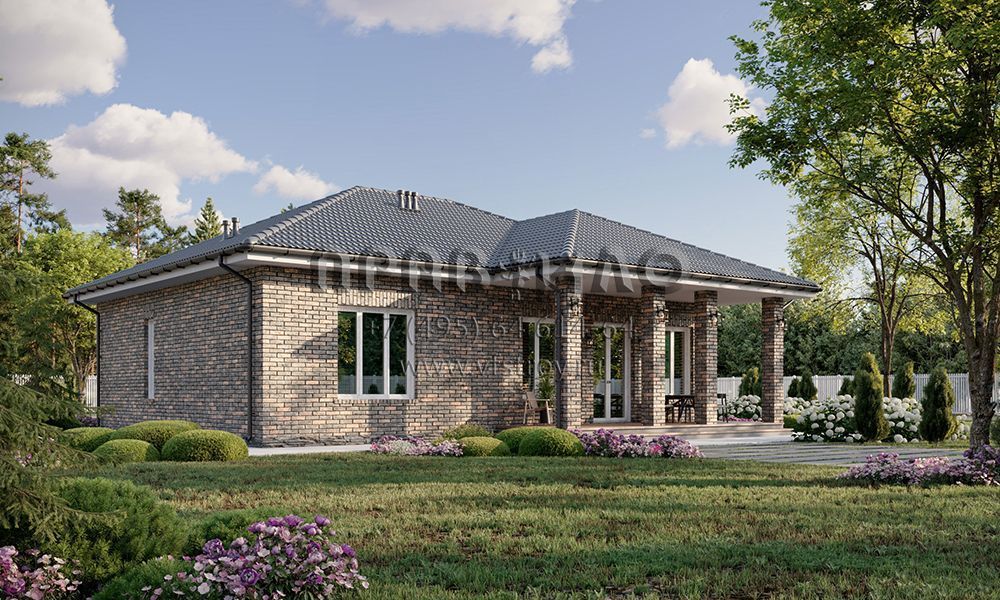Проект одноэтажного дома с классической отделкой облицовочным кирпичом S2-122 (321-122-1)