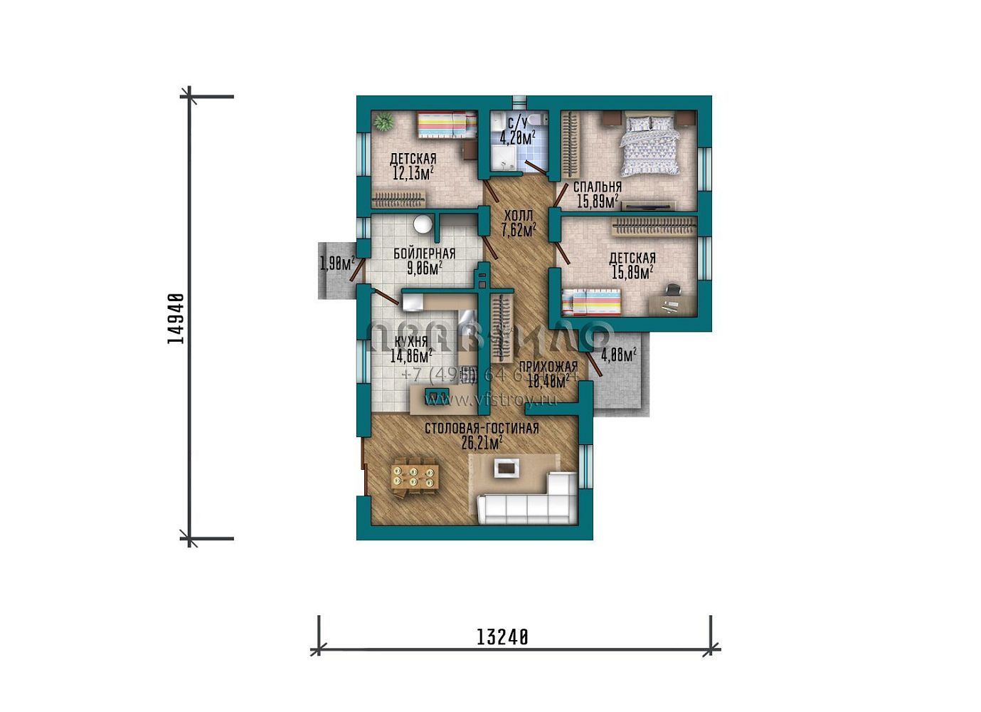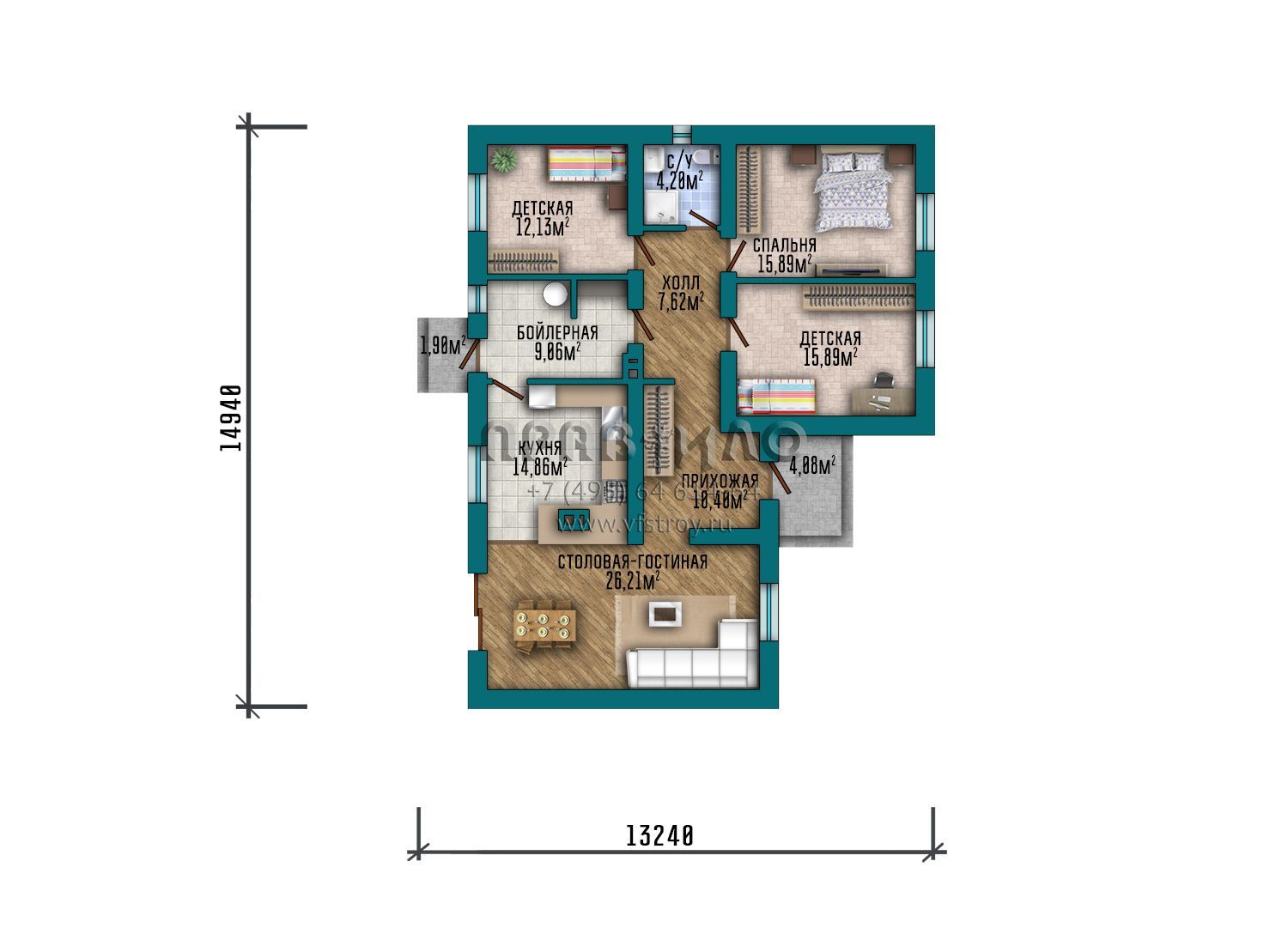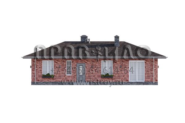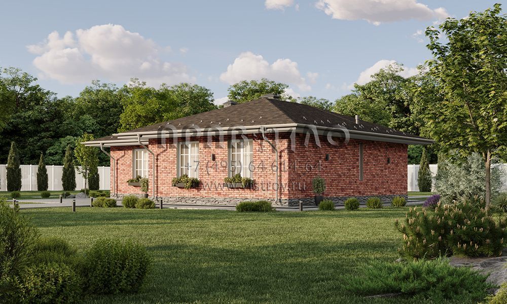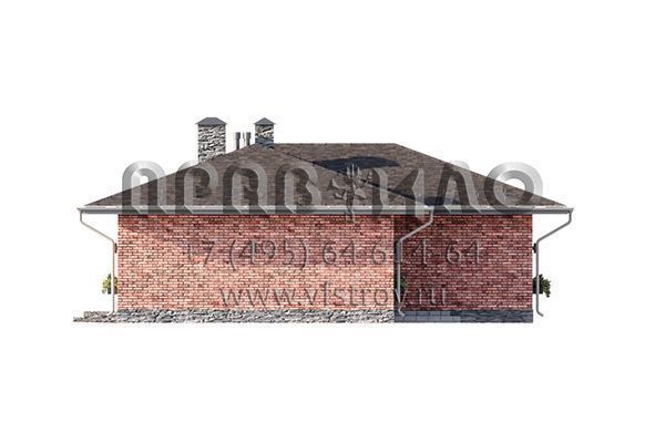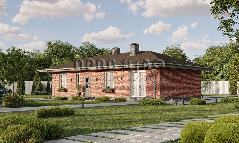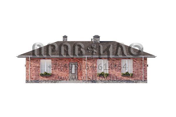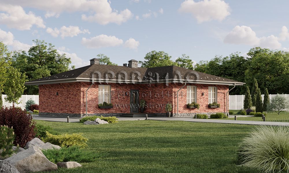 Проект Г-образного одноэтажного дома с отделкой фасада состаренным кирпичом S2-122 (379-122-1)
