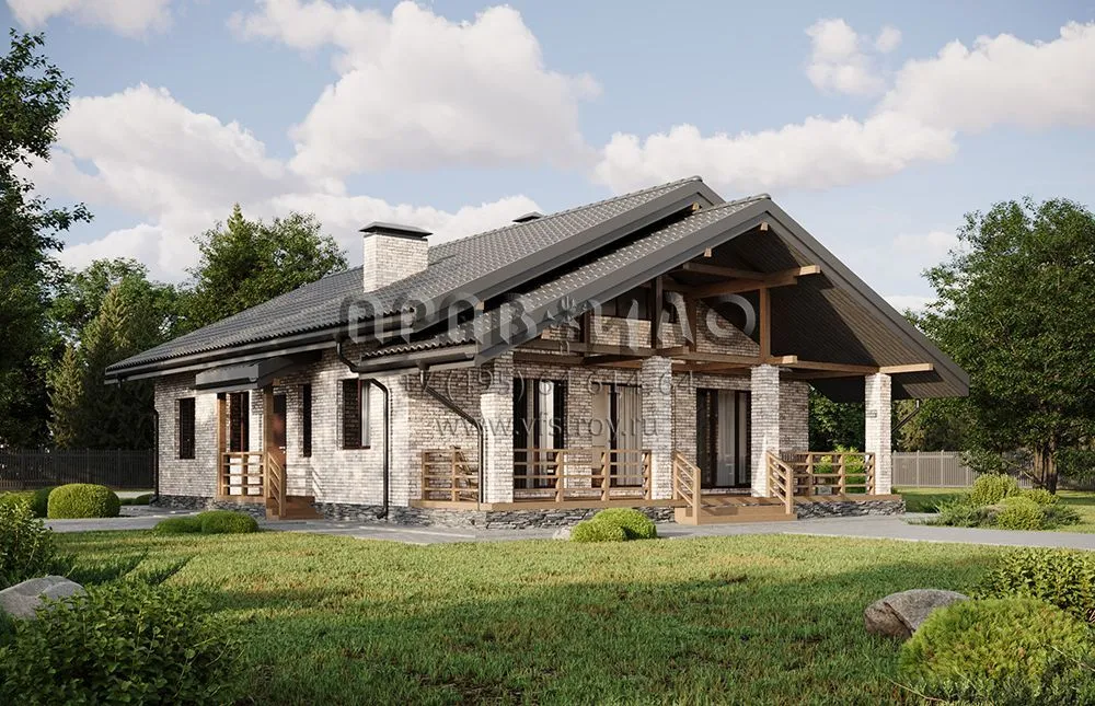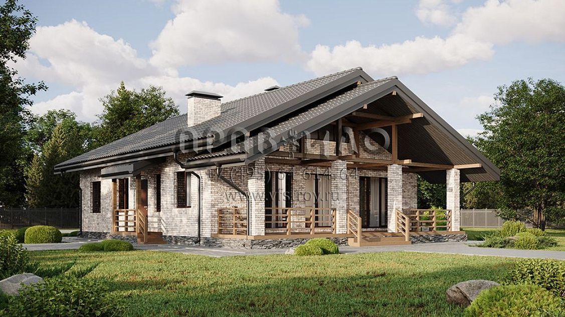 Проект выразительного одноэтажного дома с большой террасой и вторым светом S2-126 (339-126-1)