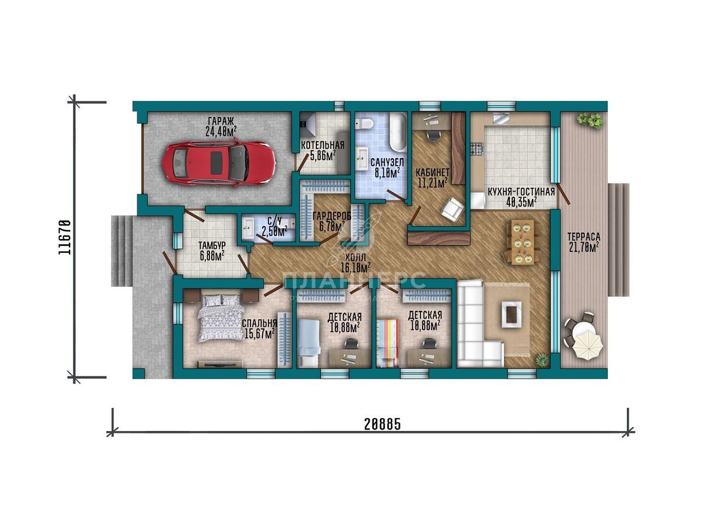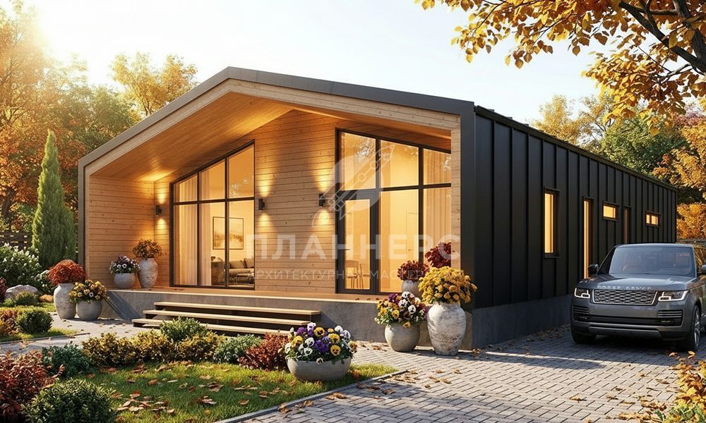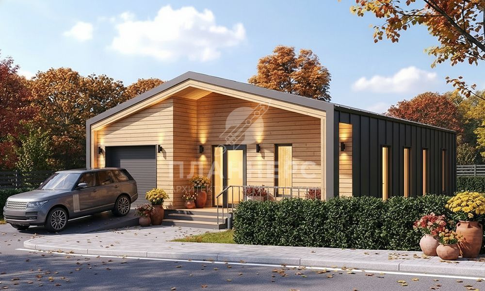 Проект в стиле барнхаус с гаражом, террасой и фальцевой кровлей S2-127 (539-127-1)