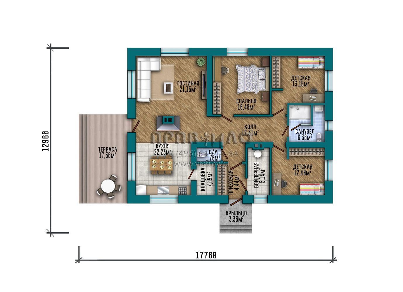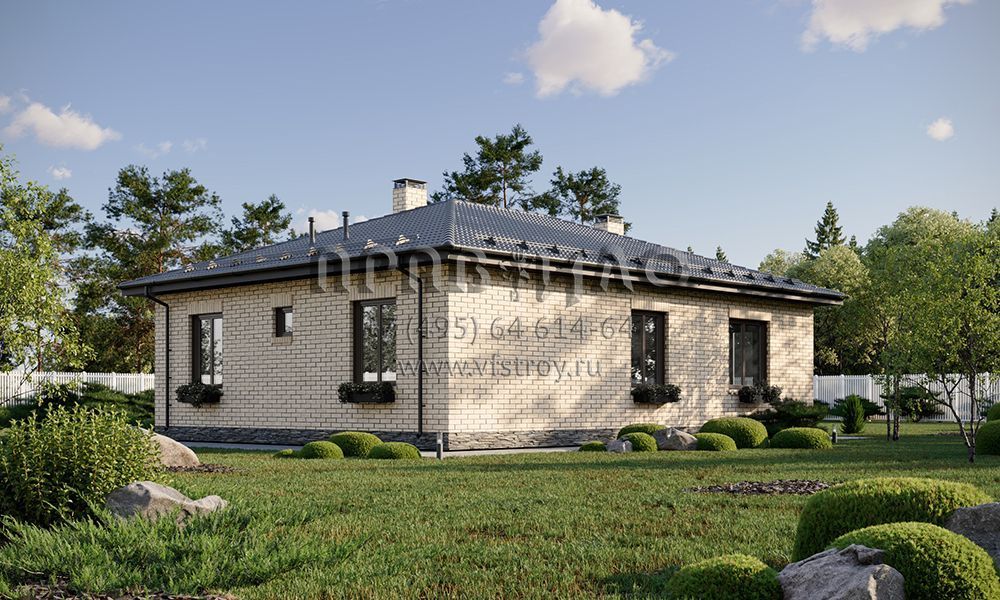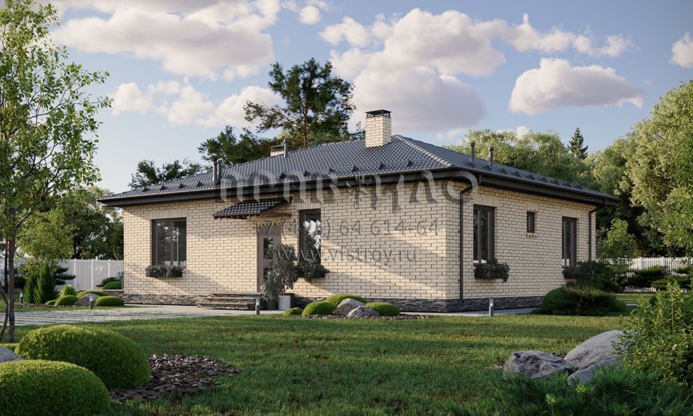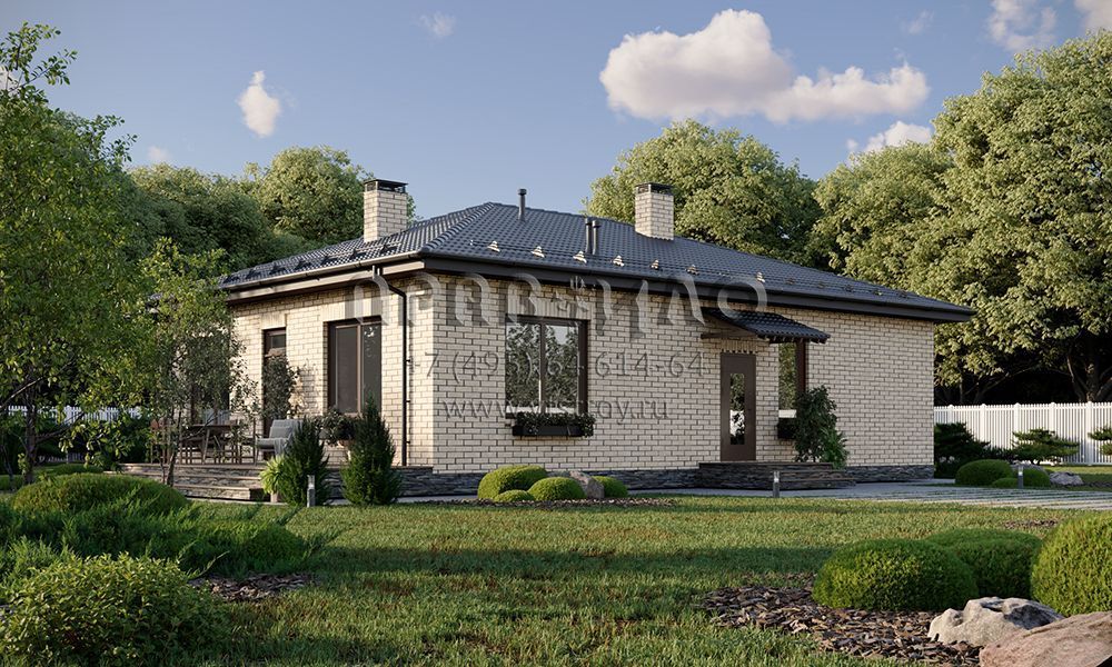 Проект одноэтажного дома с вальмовой кровлей, продуманной планировкой и открытой террасой S2-129 (356-129-1)