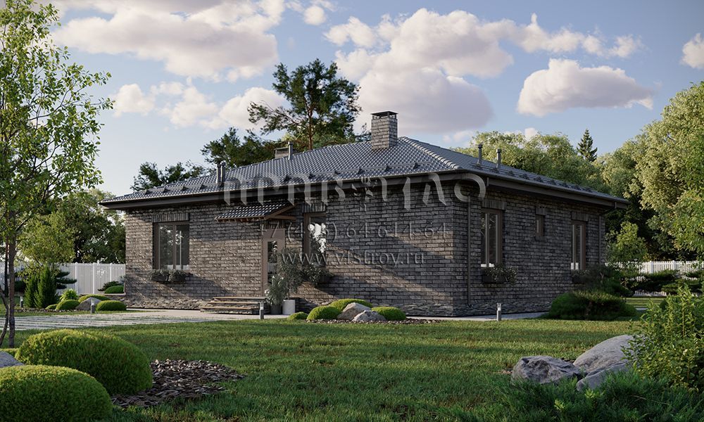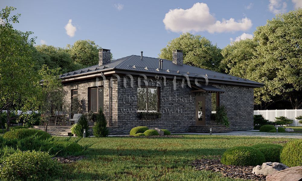Проект выразительного дома в одном уровне с вальмовой крышей и открытой террасой S2-129 (373-129-1)