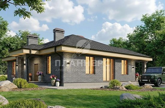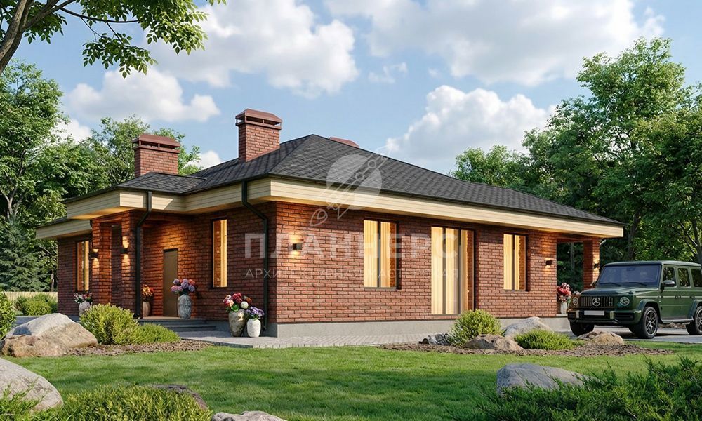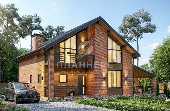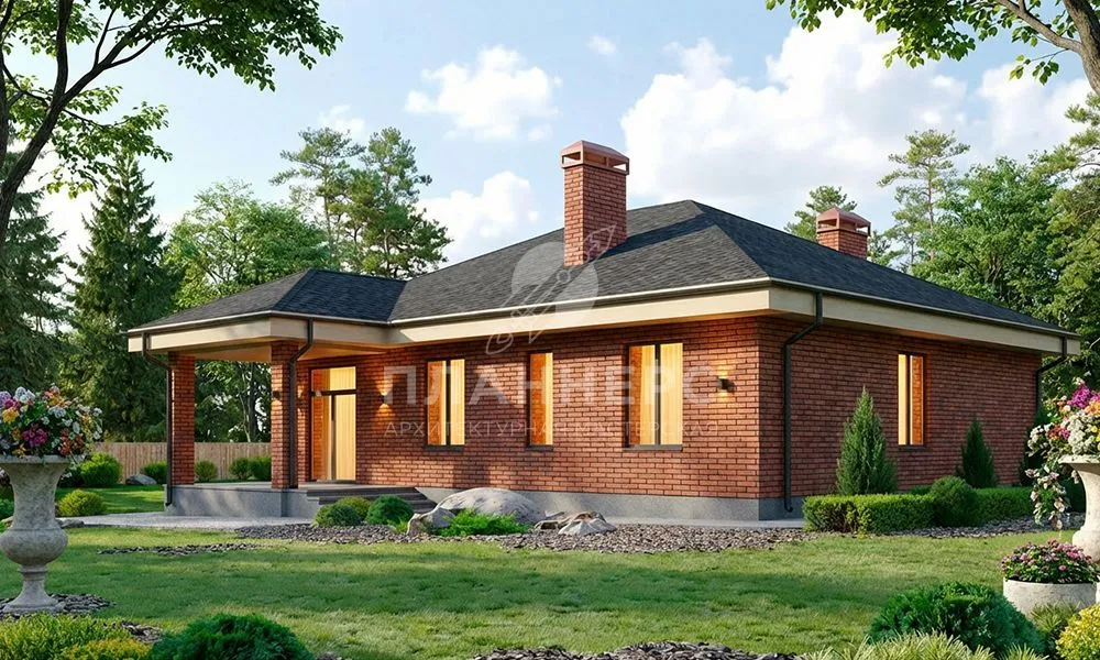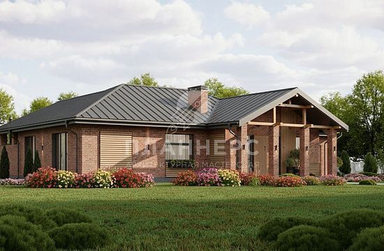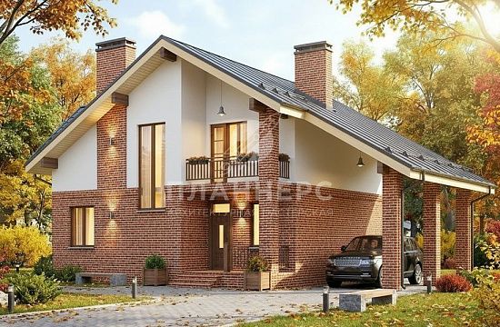 Проект с фасадом из красного кирпича и террасой S2-129 (572-129-1)