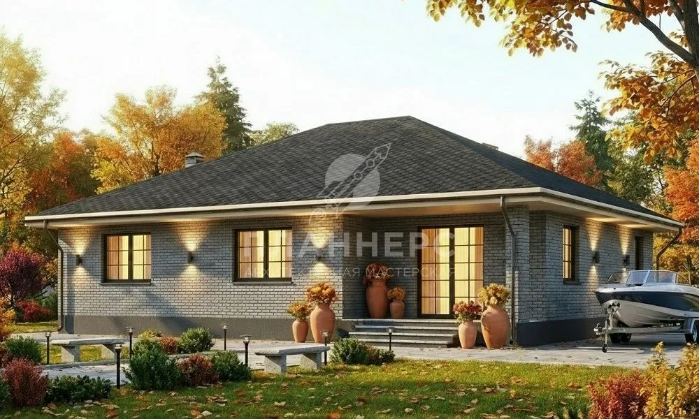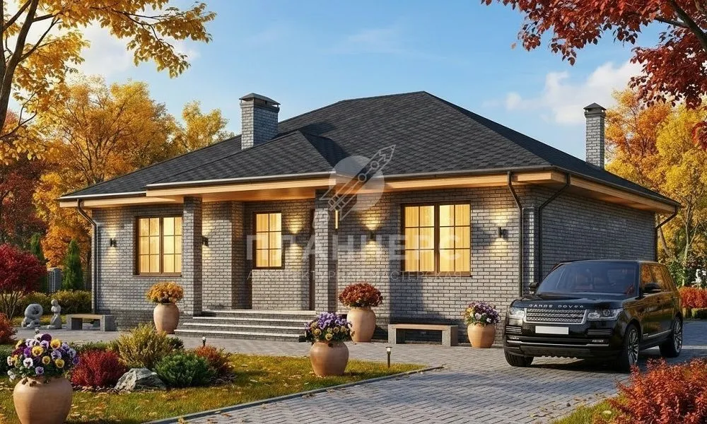 Проект с террасой и фасадом из серого кирпича S2-133 (508-133-1)