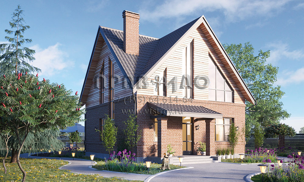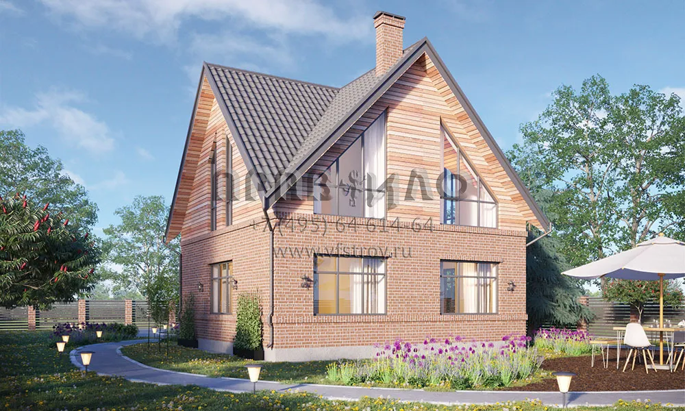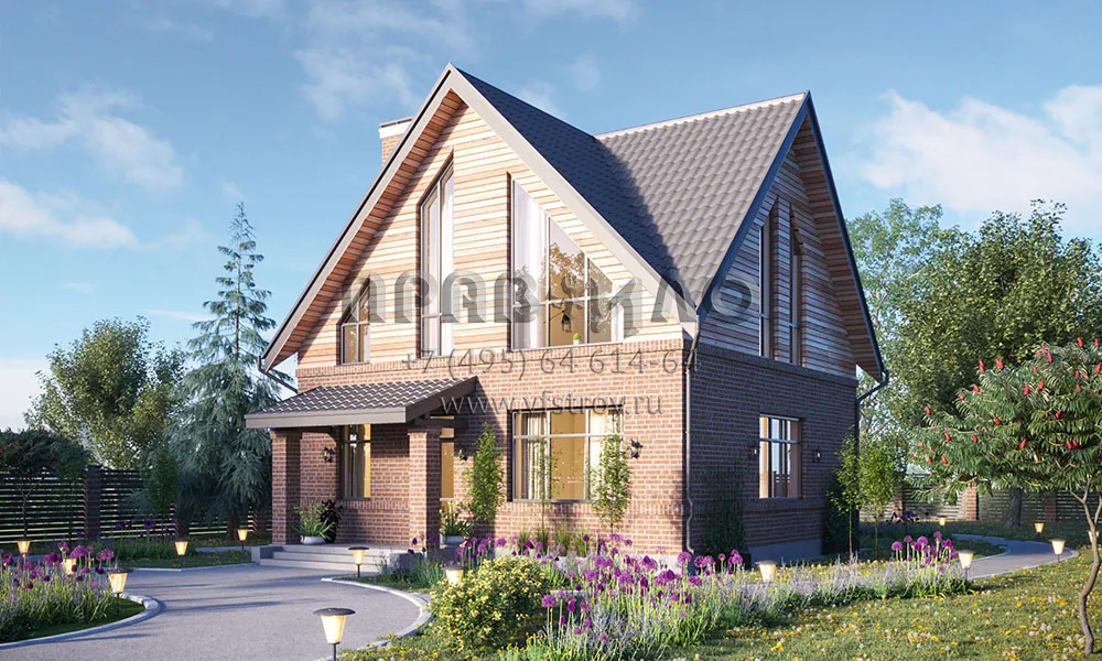 Проект компактного дома с мансардой, большими видовыми окнами и совмещенной зоной отдыха S2-134 (070-134-1М)