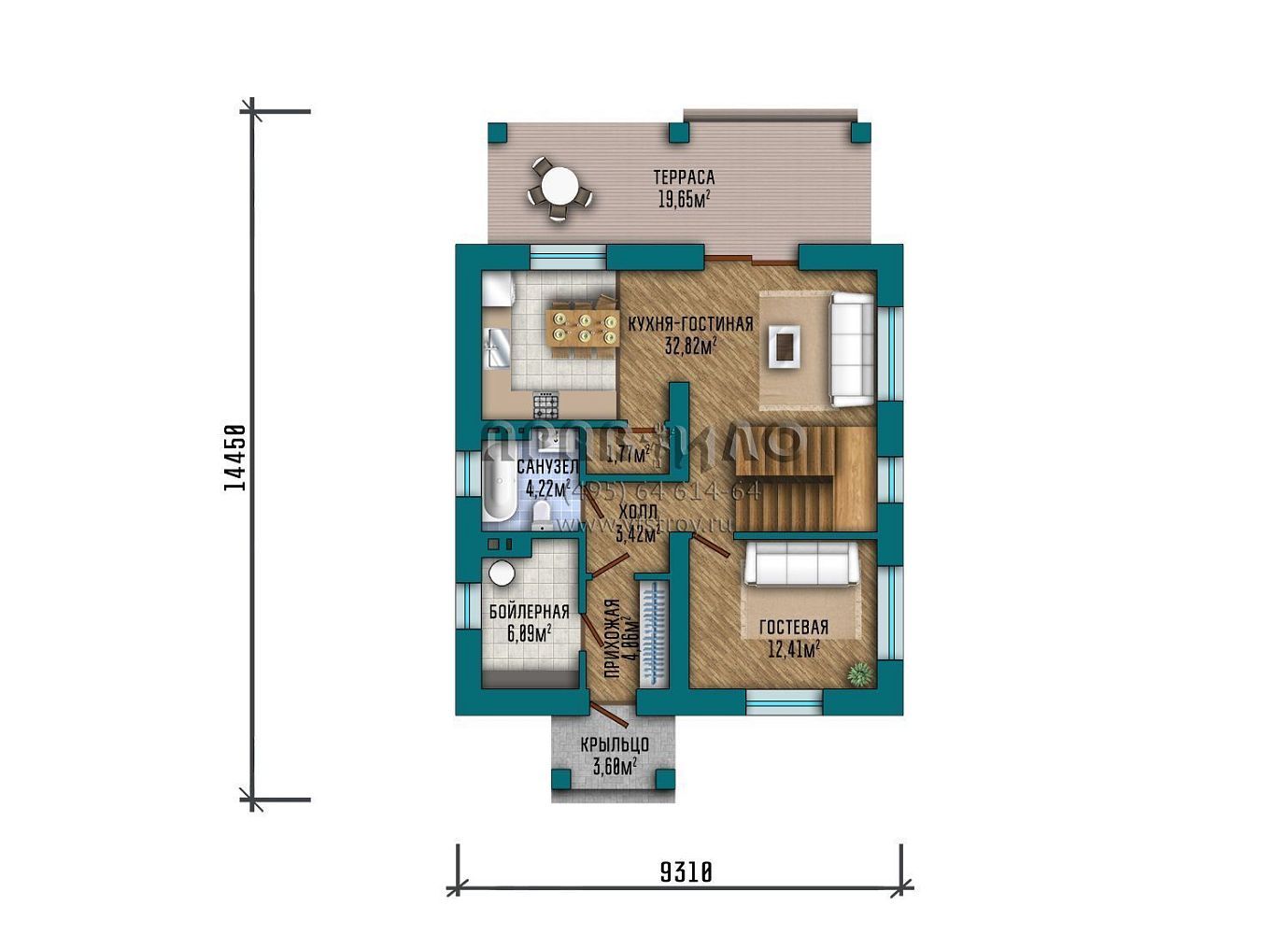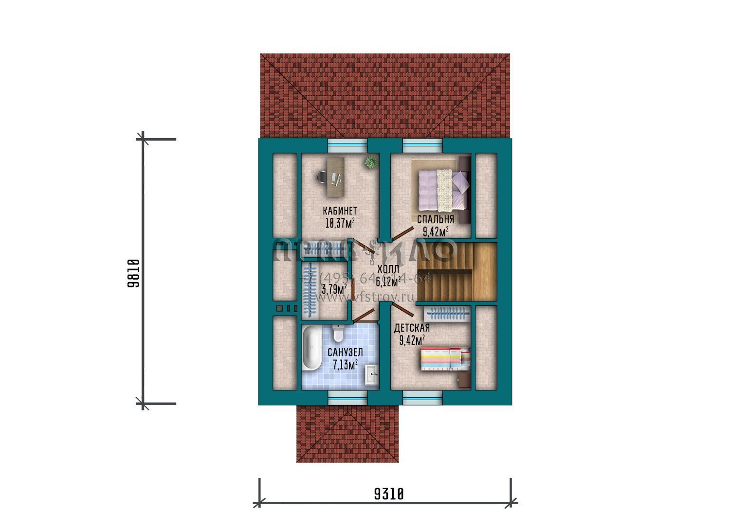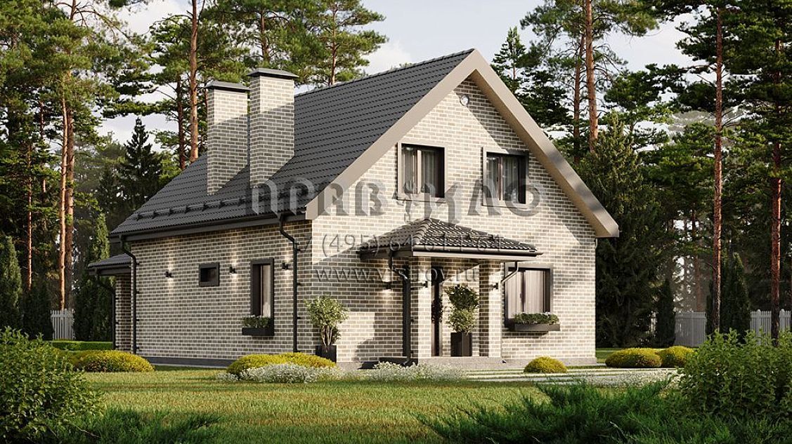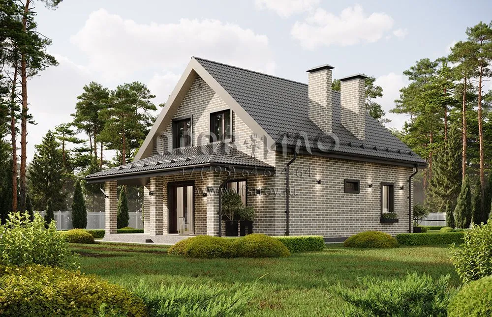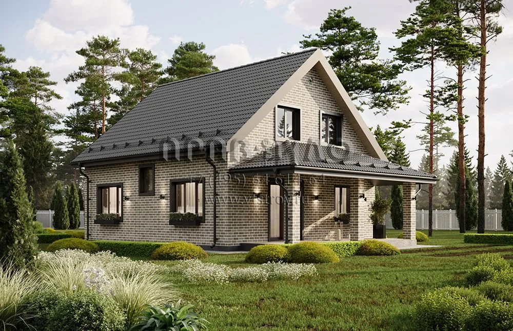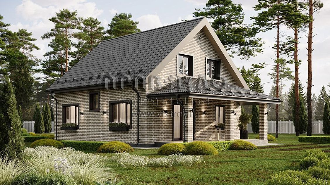 Проект небольшого дома с мансардным этажом и просторной кухней-гостиной с выходом на крытую террасу S2-134 (351-134-1М)