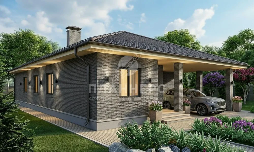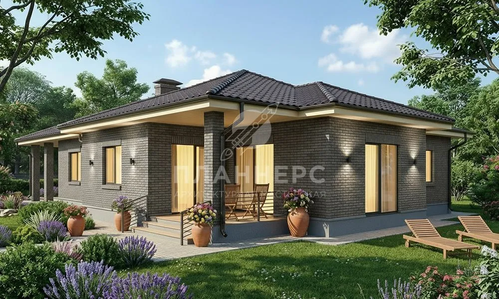 Проект с фасадом из серого кирпича и террасой S2-135 (545-136-1Г)