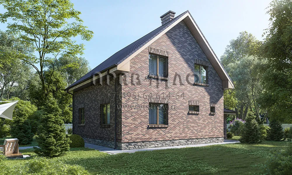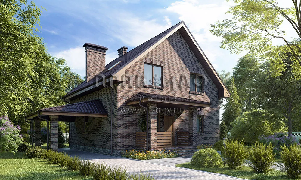 Проект компактного коттеджа под двускатной крышей с навесом для автомобиля и сауной S2-137 (079-137-1МГ)